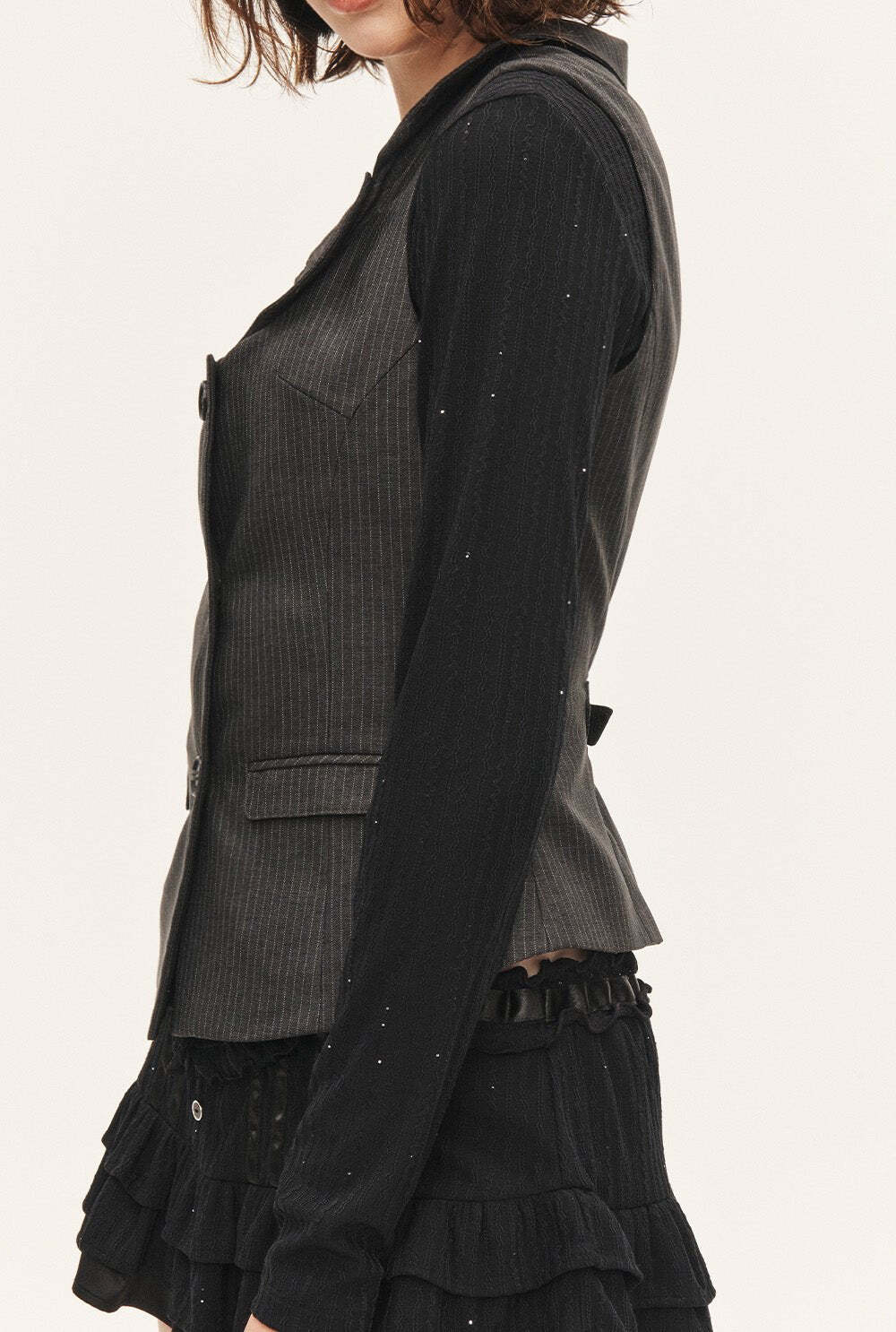 [threetimes] Muse stripe vest (gray) 正規品 韓国ブランド 韓国通販 韓国代行 韓国ファッション スリータイムズ three times 日本 店舗