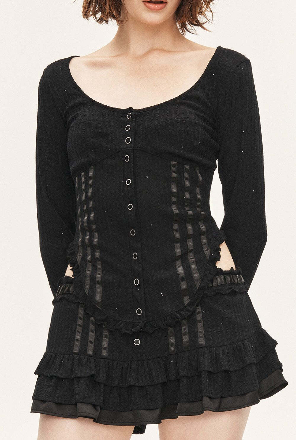 [threetimes] Twilight skirt (black) 正規品 韓国ブランド 韓国通販 韓国代行 韓国ファッション スリータイムズ three times 日本 店舗