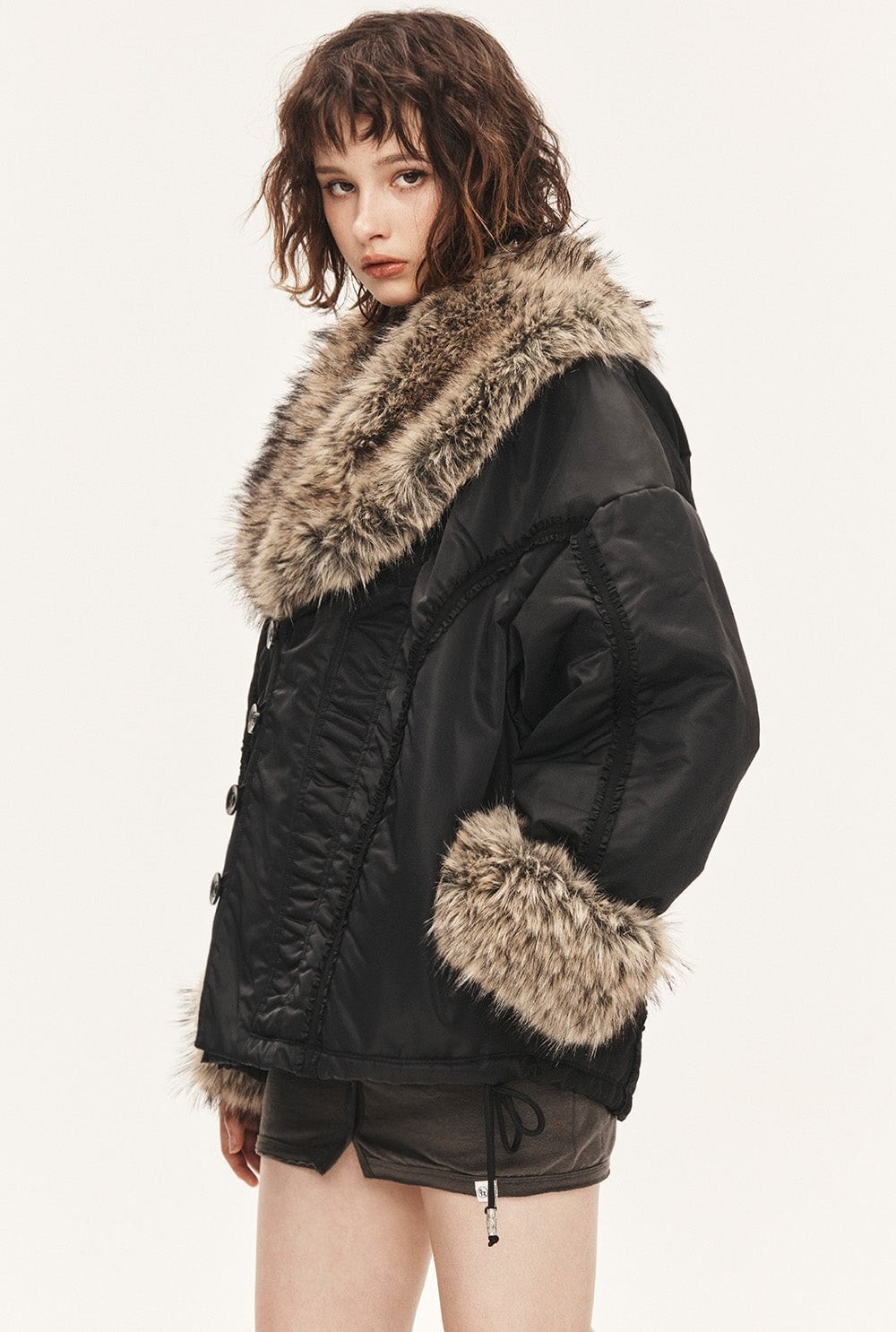 [threetimes] Hug fur jacket