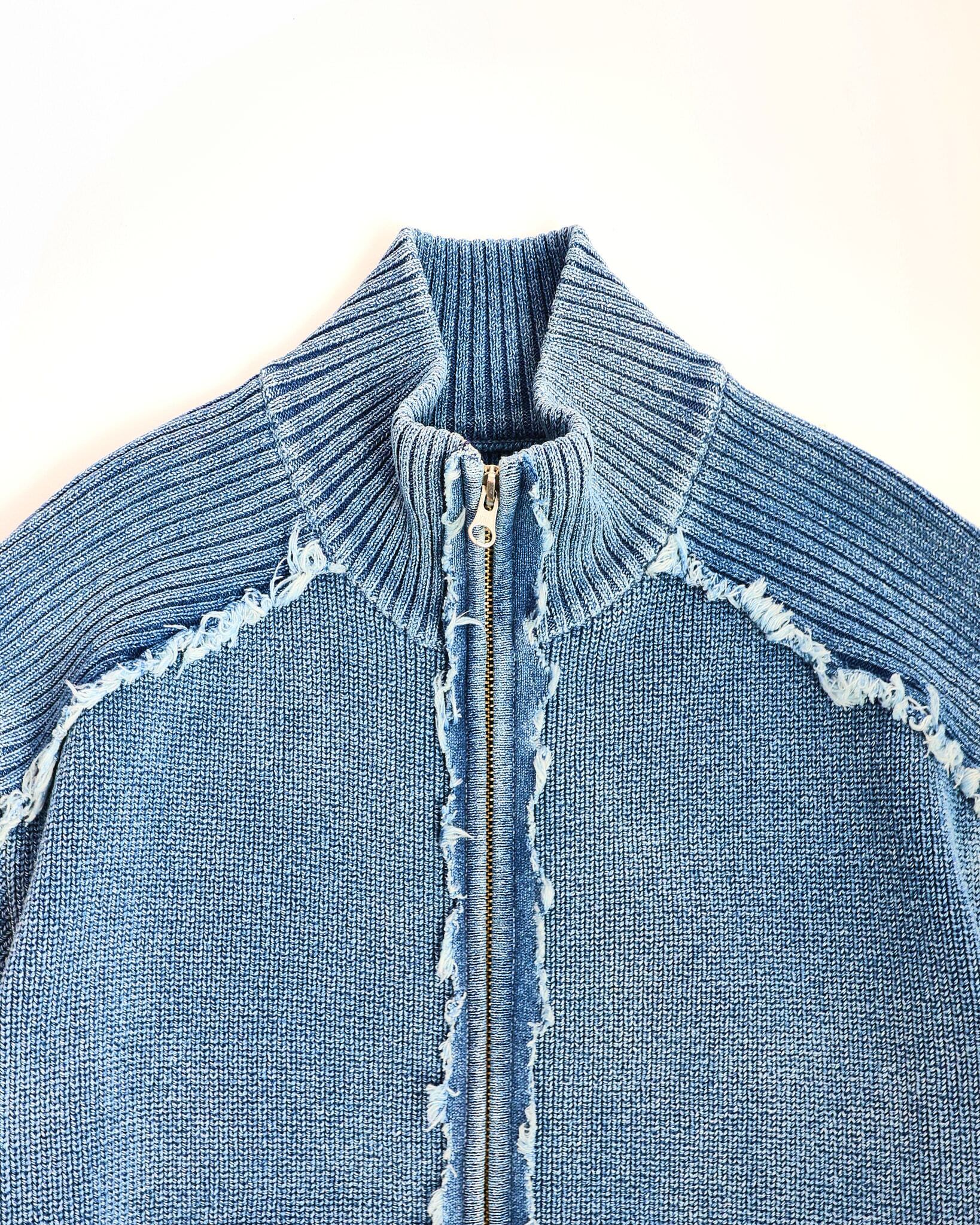 [999HUMANITY][X MISU A BARBE] DAMAGED SURDENIM ZIP UP (MEDIUM BLUE)