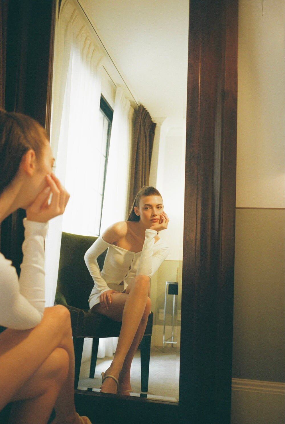 [threetimes] One-shoulder button tee (ivory) 正規品 韓国ブランド 韓国通販 韓国代行 韓国ファッション スリータイムズ three times 日本 店舗
