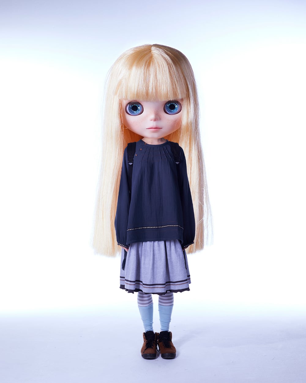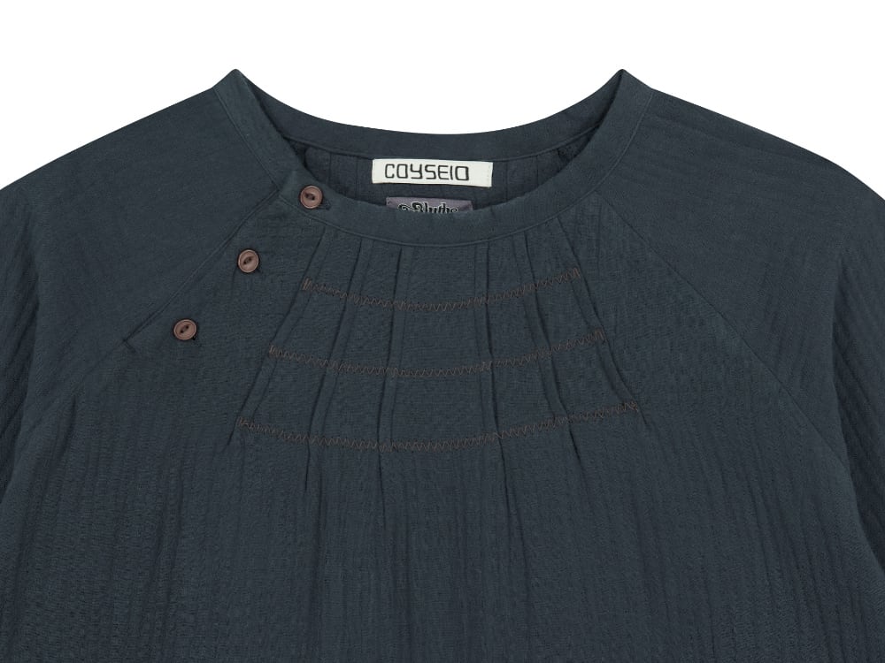 [COYSEIO] COYSEIO X BLYTHE ZIGZAG PINTUCK BLOUSE BLUE CHARCOAL