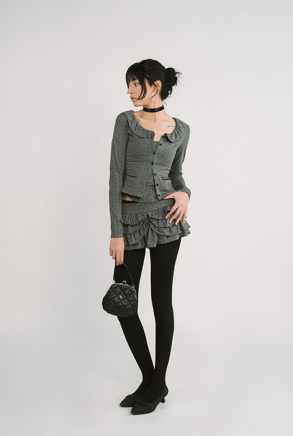 [threetimes] Lolly picot skirt (charcoal) 正規品 韓国ブランド 韓国通販 韓国代行 韓国ファッション スリータイムズ three times 日本 店舗