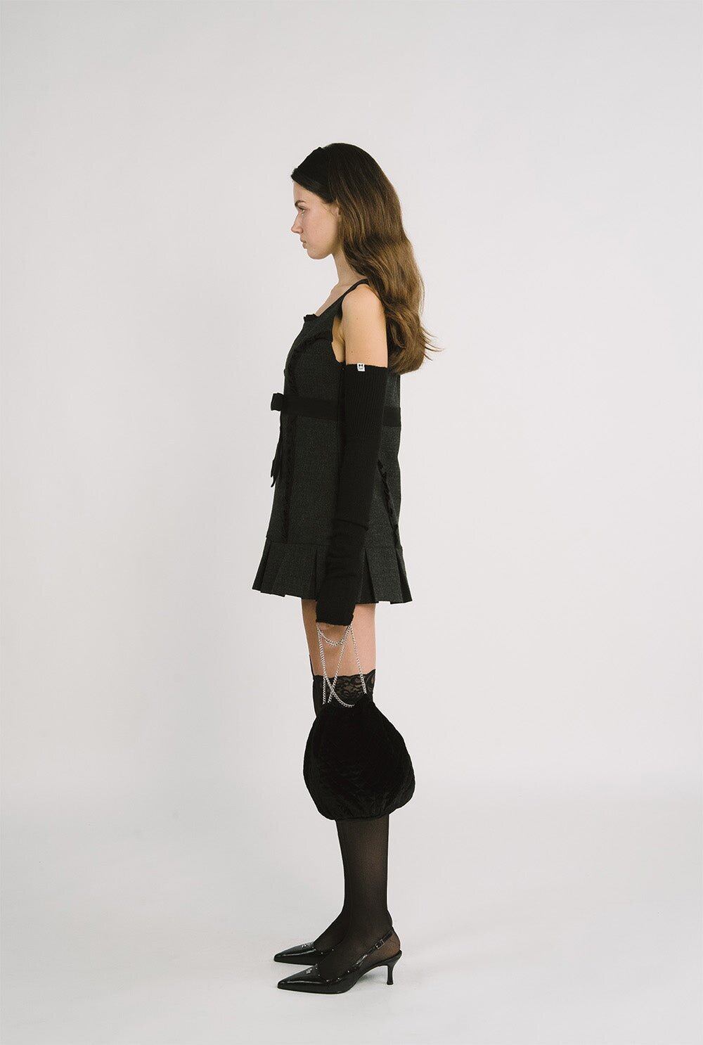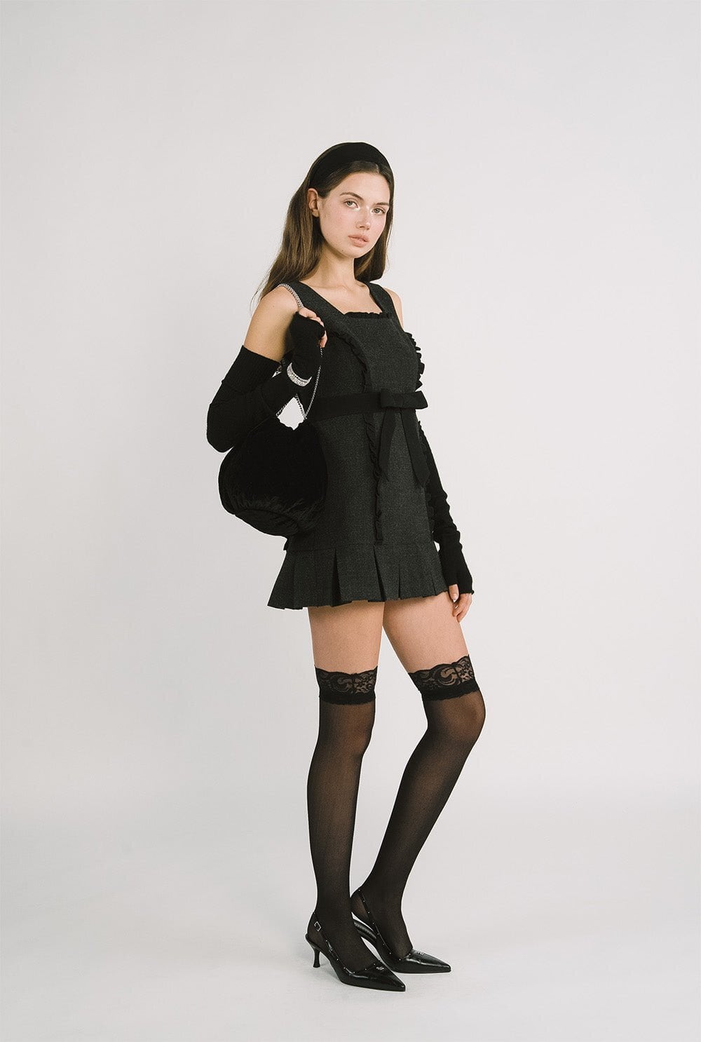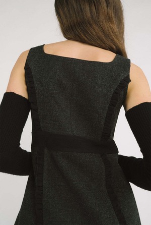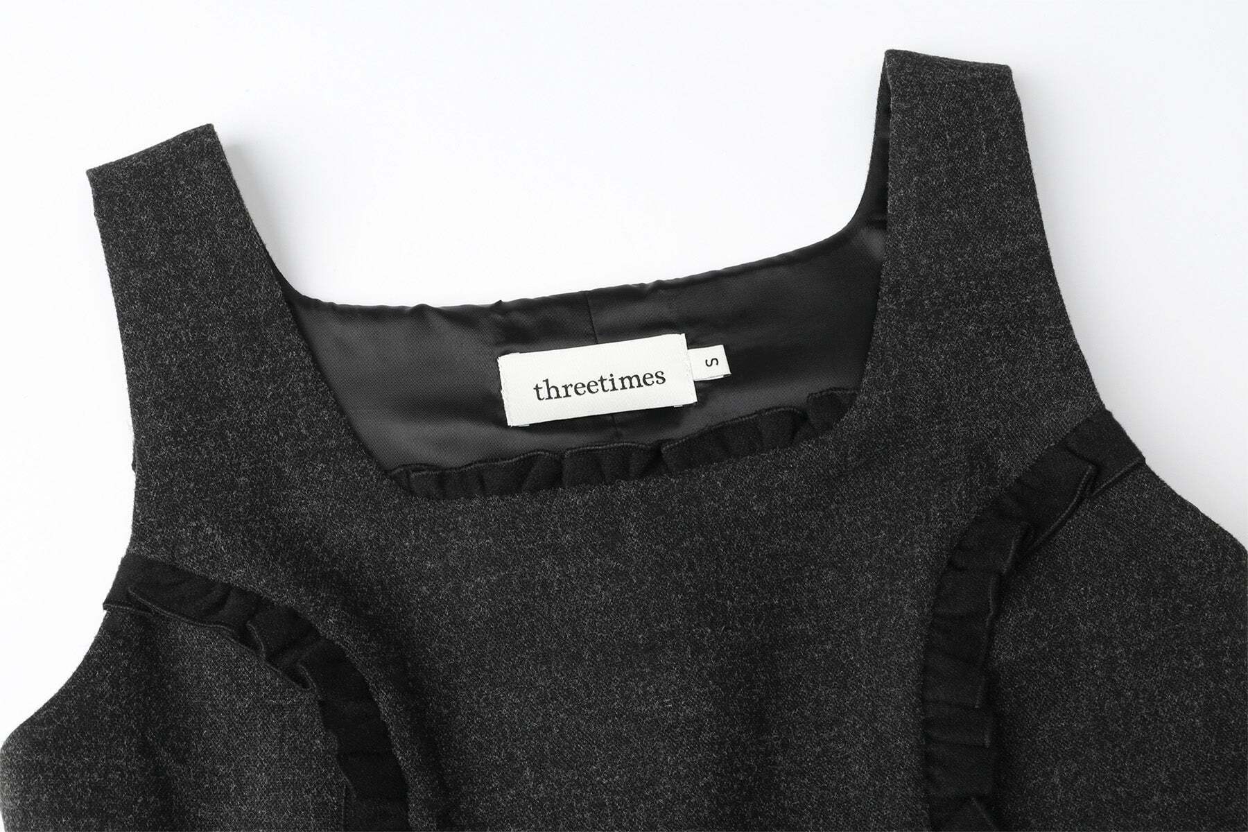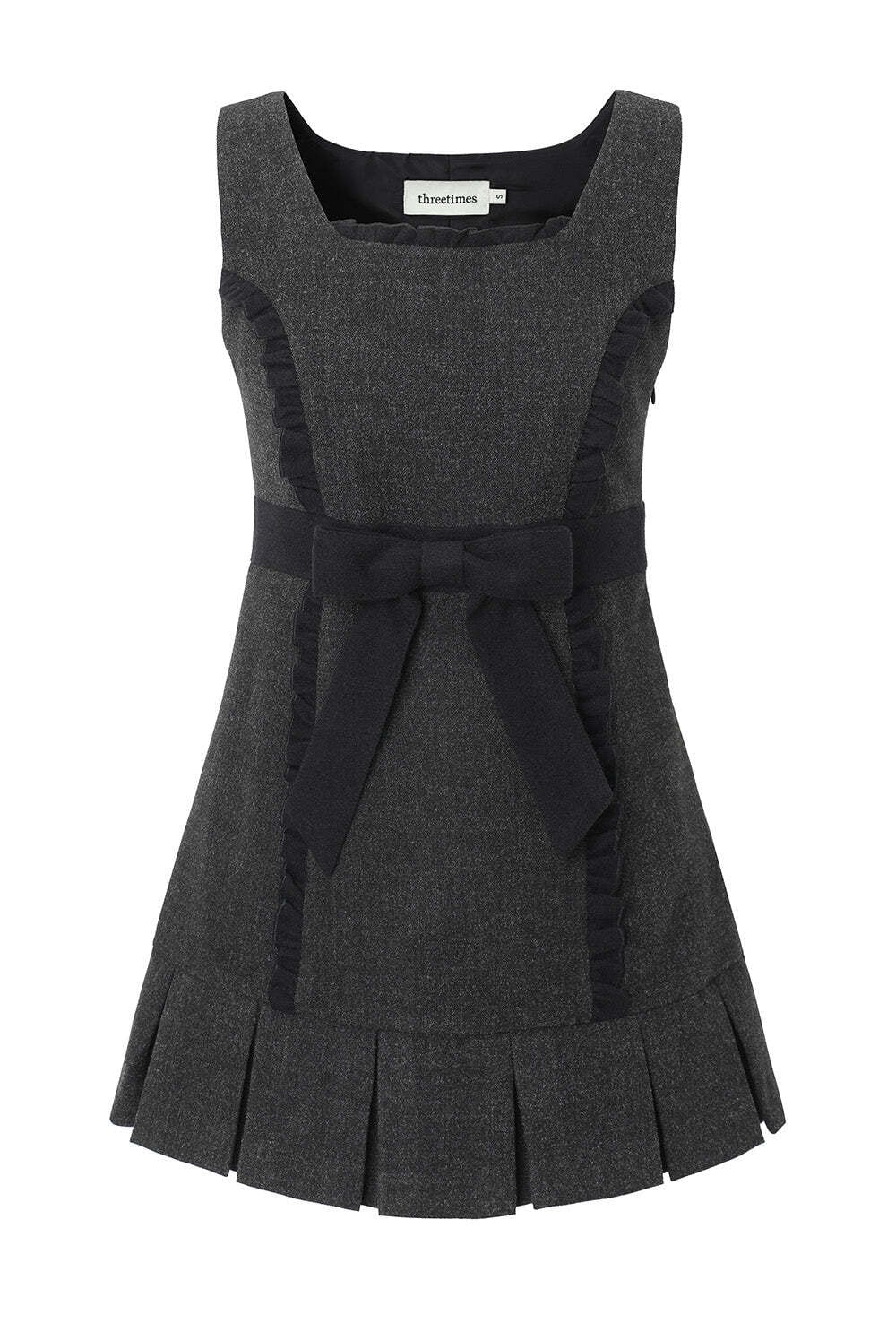 [threetimes] Barbie ribbon dress (charcoal) 正規品 韓国ブランド 韓国通販 韓国代行 韓国ファッション スリータイムズ three times 日本 店舗