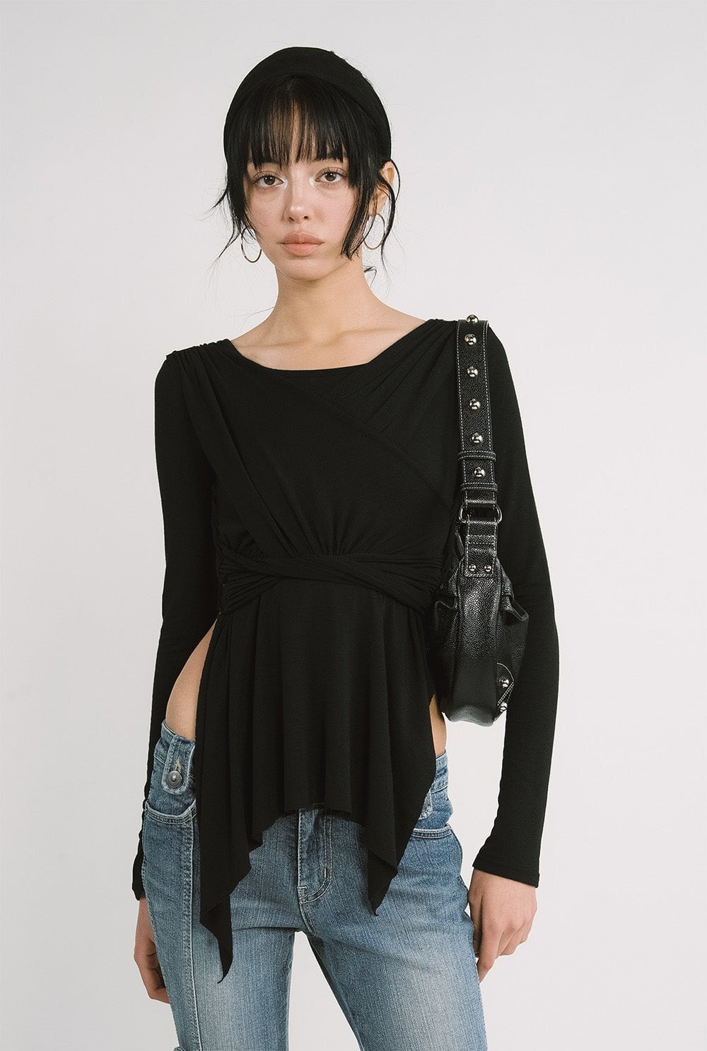[threetimes] Eclipse top (black) 正規品 韓国ブランド 韓国通販 韓国代行 韓国ファッション スリータイムズ three times 日本 店舗