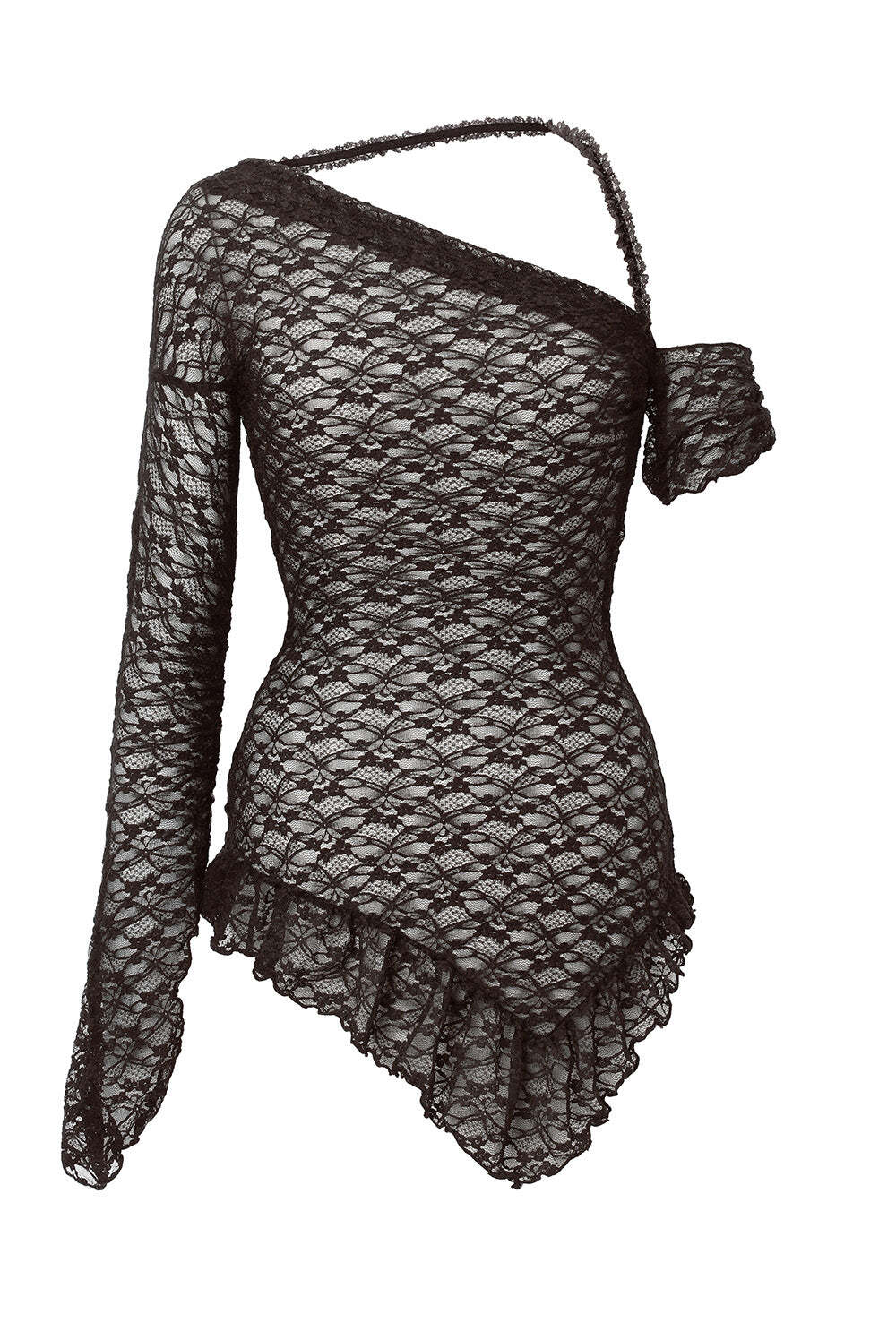 [threetimes] Lace drape top (brown) 正規品 韓国ブランド 韓国通販 韓国代行 韓国ファッション スリータイムズ three times 日本 店舗