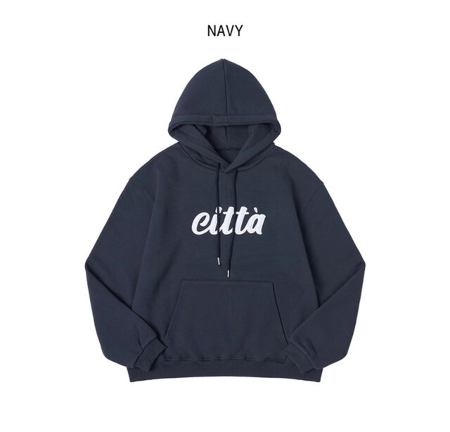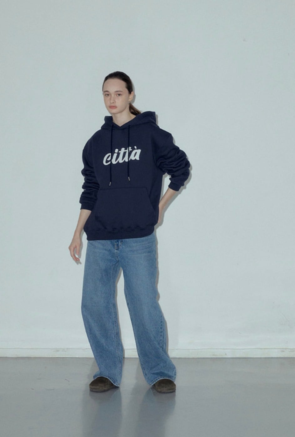 [citta] Applique Work Velvet Citta Logo Hoodie navy