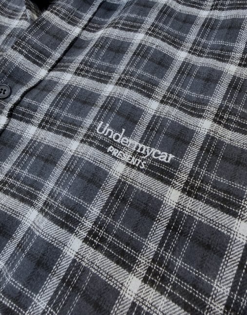 [UNDERMYCAR] Mu.155 Classic Logo Basic Long Sleeve Flannel Shirts Navy White