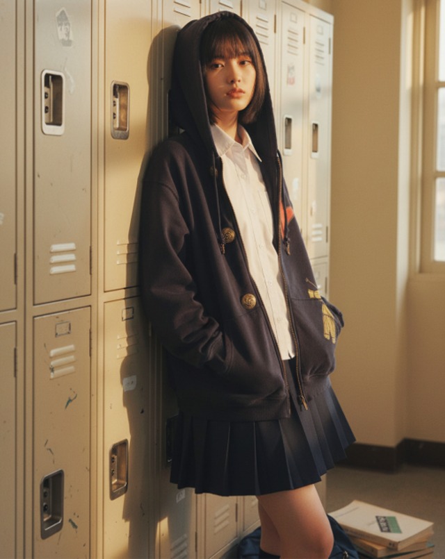 [UNDERMYCAR] JUJUTSU KAISEN Undermycar Kugisaki Nobara With Button Zipped Hoodie Navy