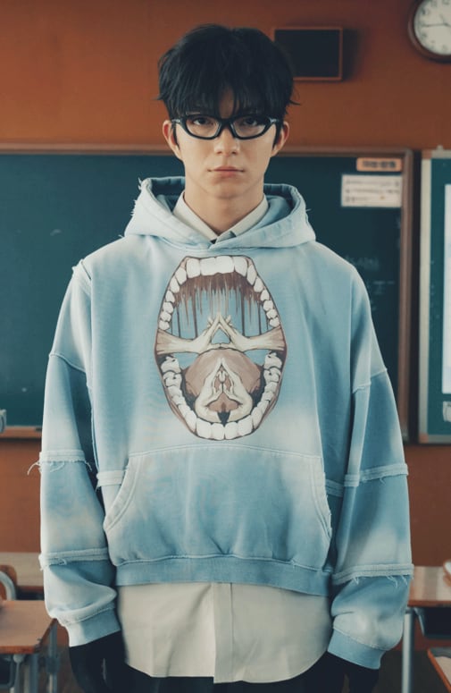 [UNDERMYCAR] JUJUTSU KAISEN Undermycar Mahito Stitched Vtg Hoodie Sky 正規品 韓国ブランド 韓国通販 韓国代行 韓国ファッション アンダーマイカー 日本 店舗