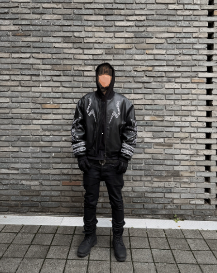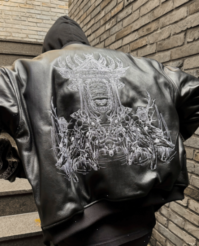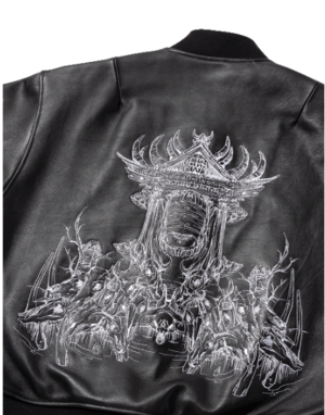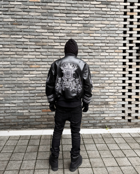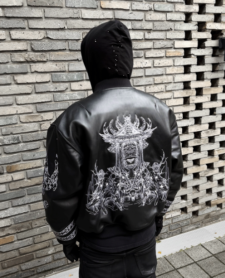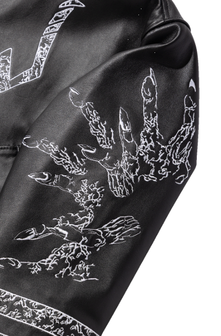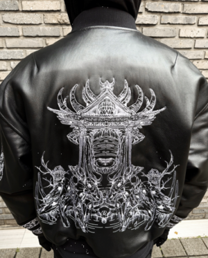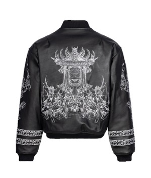 [UNDERMYCAR] JUJUTSU KAISEN Undermycar Ryomen Sukuna Embroidered Leather Bomber Black