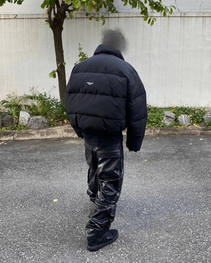 [UNDERMYCAR] Mu.15 Anti Fxxking Logo Play Triple Logo Crop Padding Jacket Black