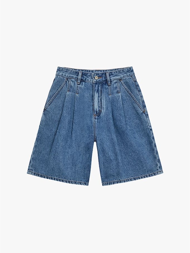 [dblofficial] 투 턱 하프 데님_미디엄 블루 (S)