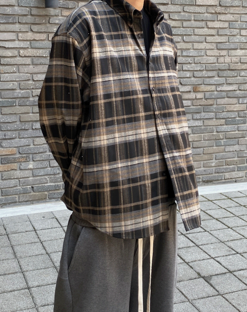 [UNDERMYCAR] Undermycar Mu.107 Anti Fxxking Logo Play Basic Long Sleeve Check Shirts Black Brown