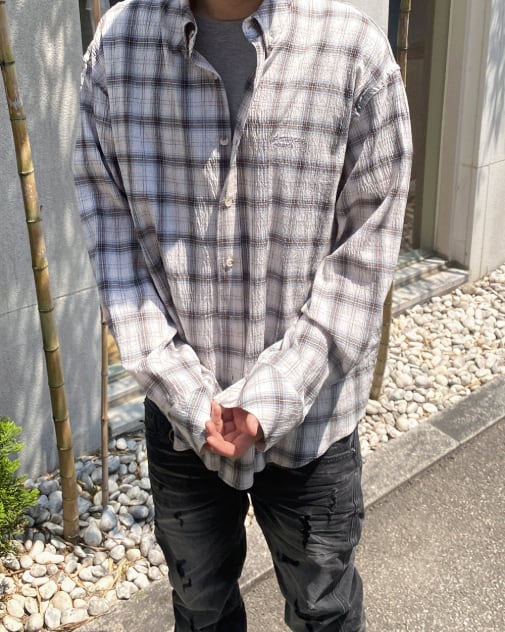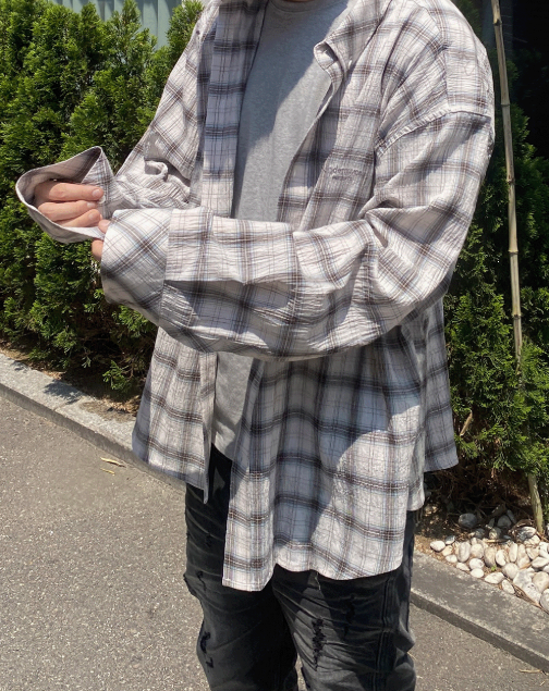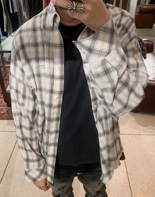 [UNDERMYCAR] Undermycar Mu.118 Original Logo Basic Long Sleeve Check Shirts Beige Blue