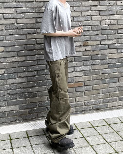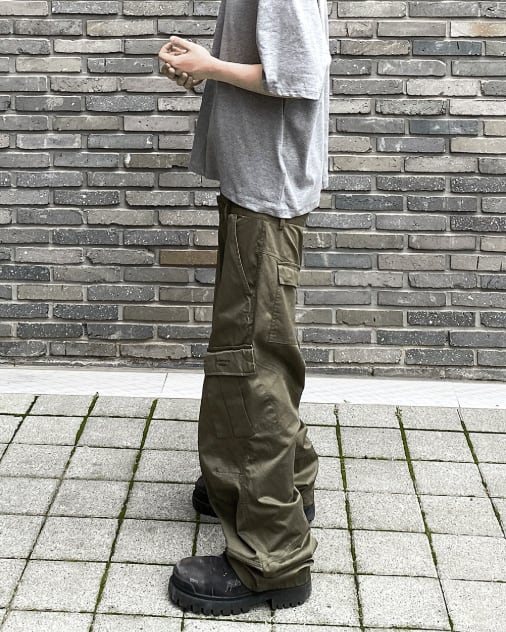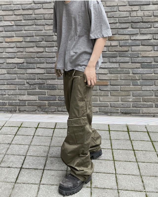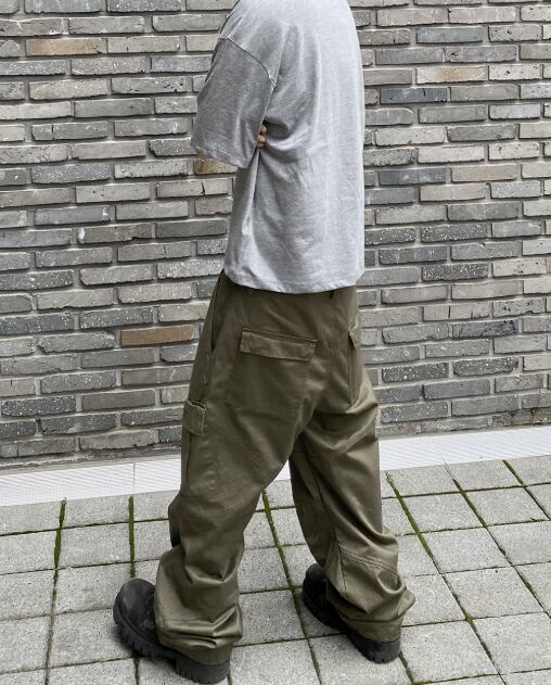 [UNDERMYCAR] Undermycar Mu.109 Anti Fxxking Logo Play Semi-Wide Cargo Pants Khaki 正規品 韓国ブランド 韓国通販 韓国代行 韓国ファッション アンダーマイカー 日本 店舗