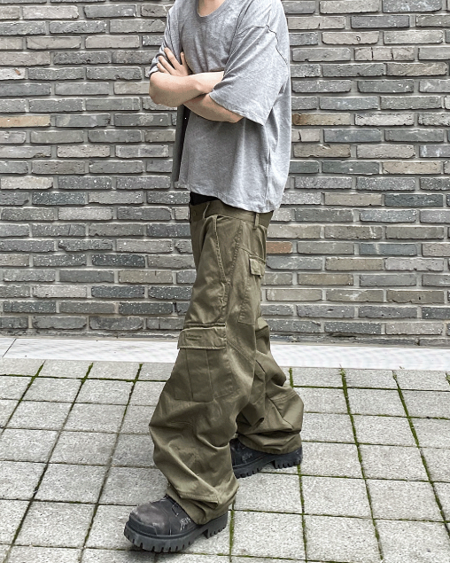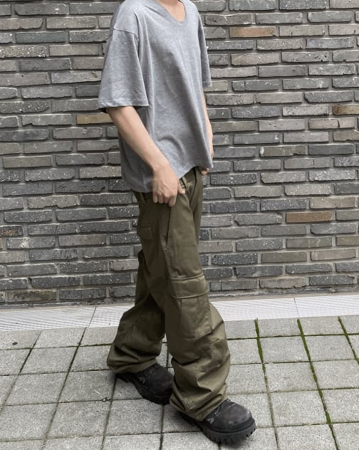 [UNDERMYCAR] Undermycar Mu.109 Anti Fxxking Logo Play Semi-Wide Cargo Pants Khaki
