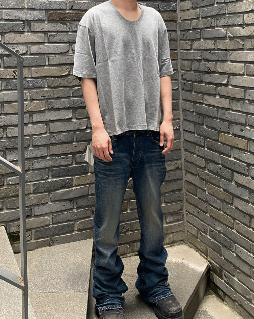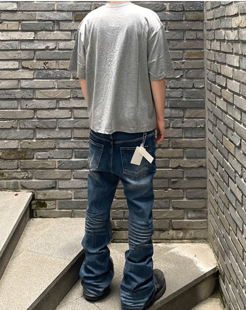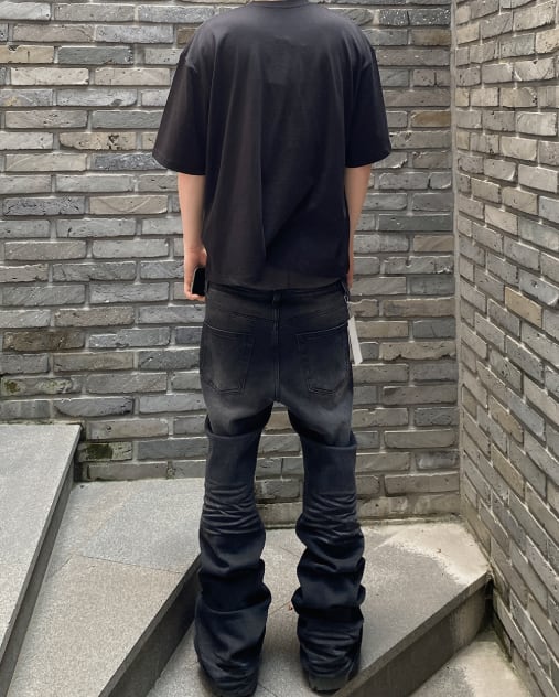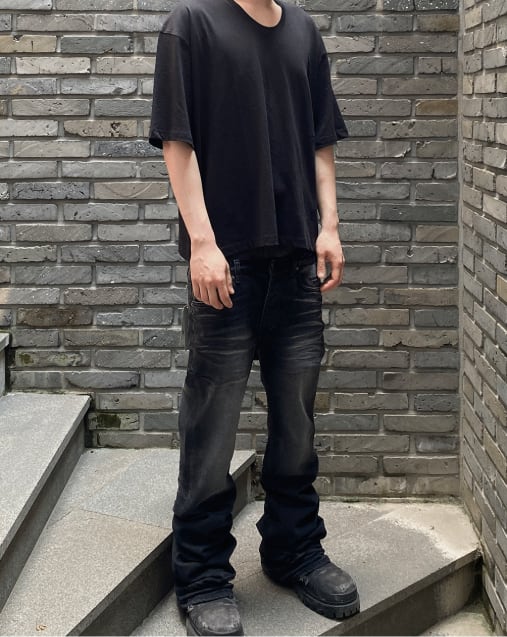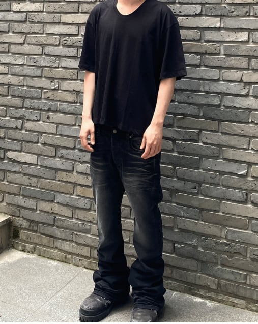 [UNDERMYCAR] Undermycar Mu.114 Original Logo Washed Slim Flare Jeans Washed Black