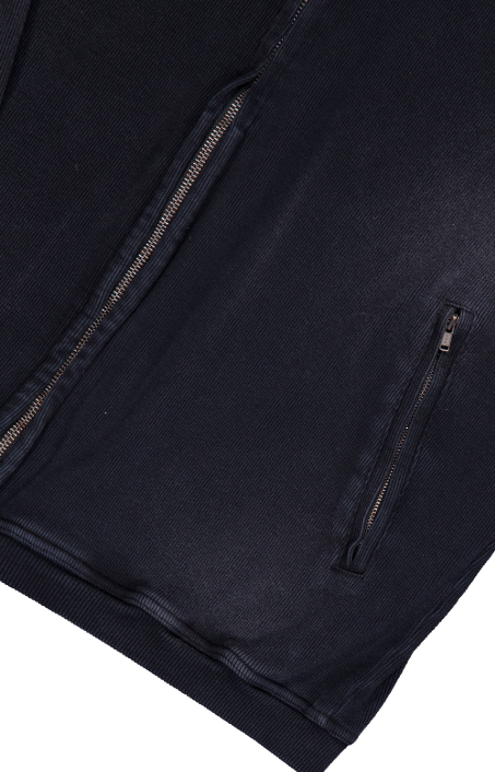 [UNDERMYCAR] Undermycar Mu.156 Classic Logo Brush Washed Ribbed Mock Neck Zip-Up Washed Black