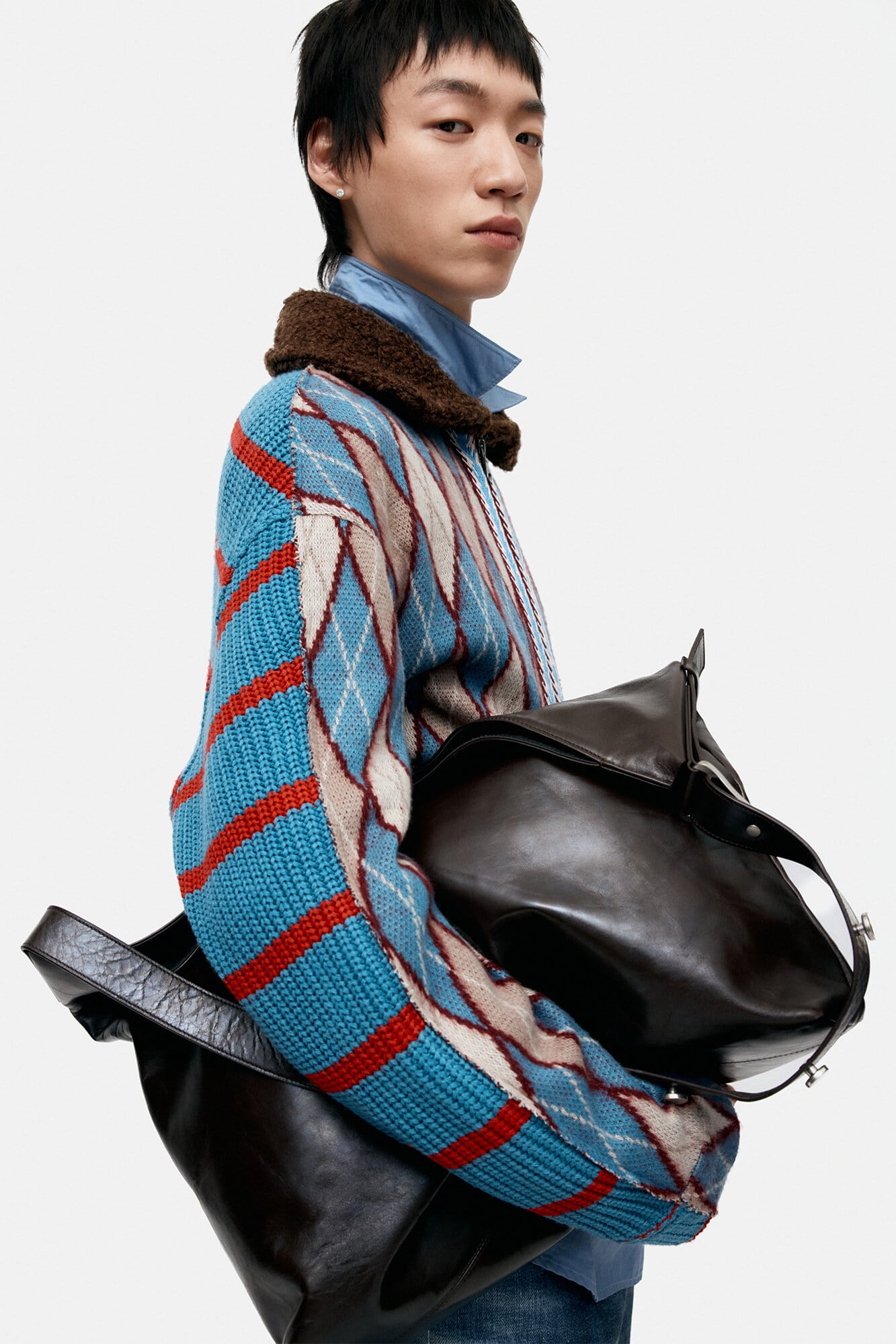 [ANDERSSON BELL] ARGYLE & STRIPE HALF ZIP-UP CARDIGAN atb1376m(MULTI)