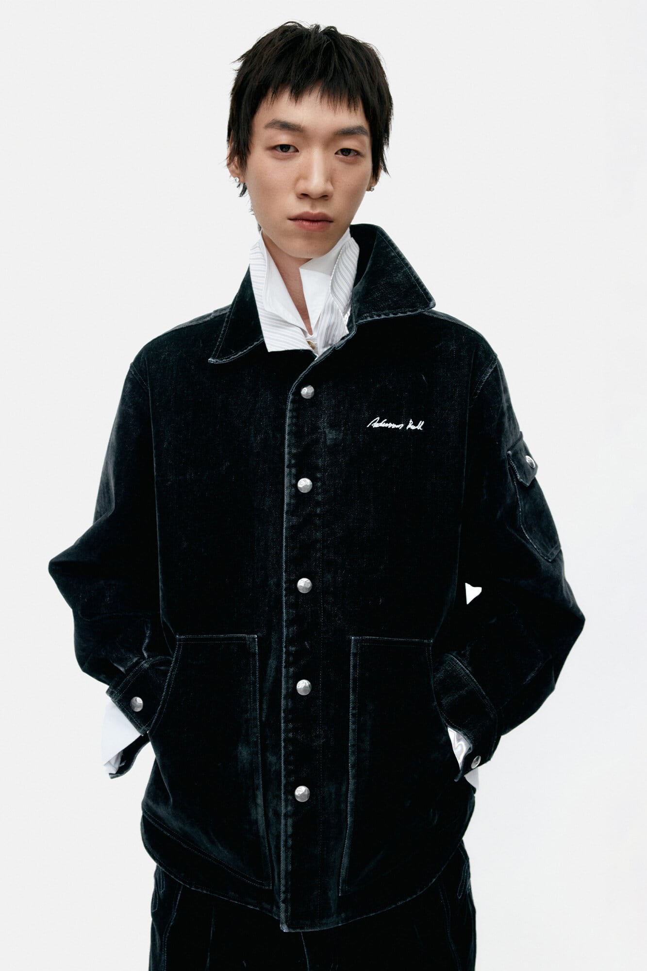 [ANDERSSON BELL] PADDED VELVET DENIM SHIRT atb1374m(BLACK)