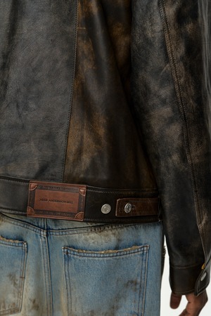 [ANDERSSON BELL] LEATHER PATCHWORK TRUCKER JACKET awa741m(BROWN)