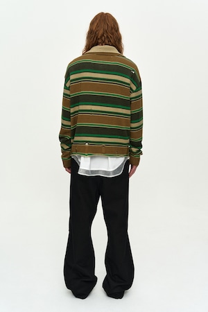 [ANDERSSON BELL] DOUBLE LAYERED STRIPE HALF ZIP-UP SWEATER atb1451m(BEIGE/BROWN)