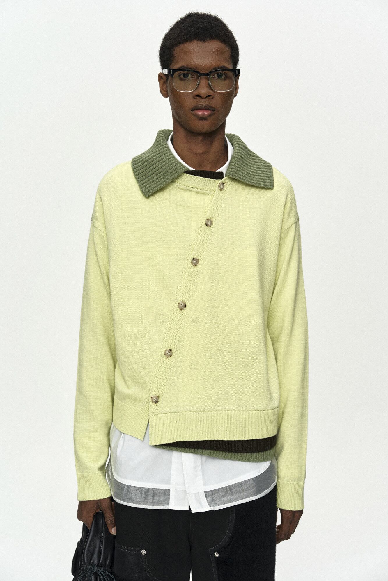 [ANDERSSON BELL] LAYERED COLLAR CARDIGAN atb1428m(LEMON)