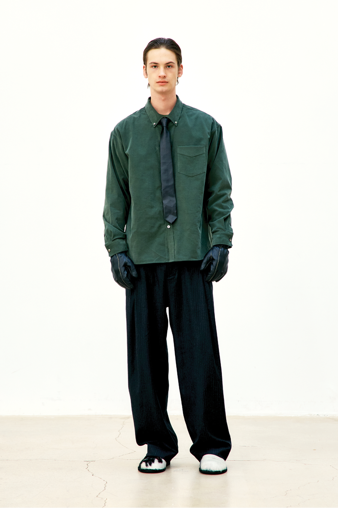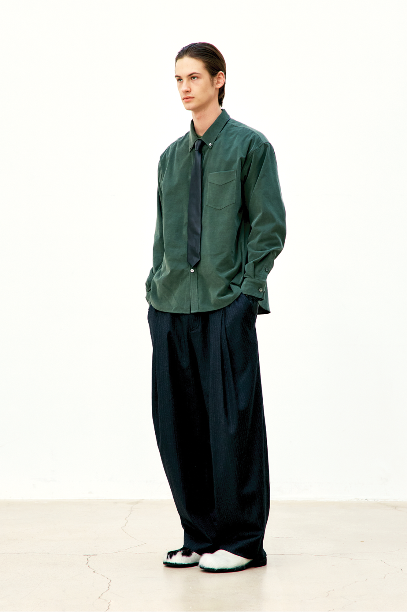 [COOR] Fine Corduroy One-Pocket Shirt (Green)