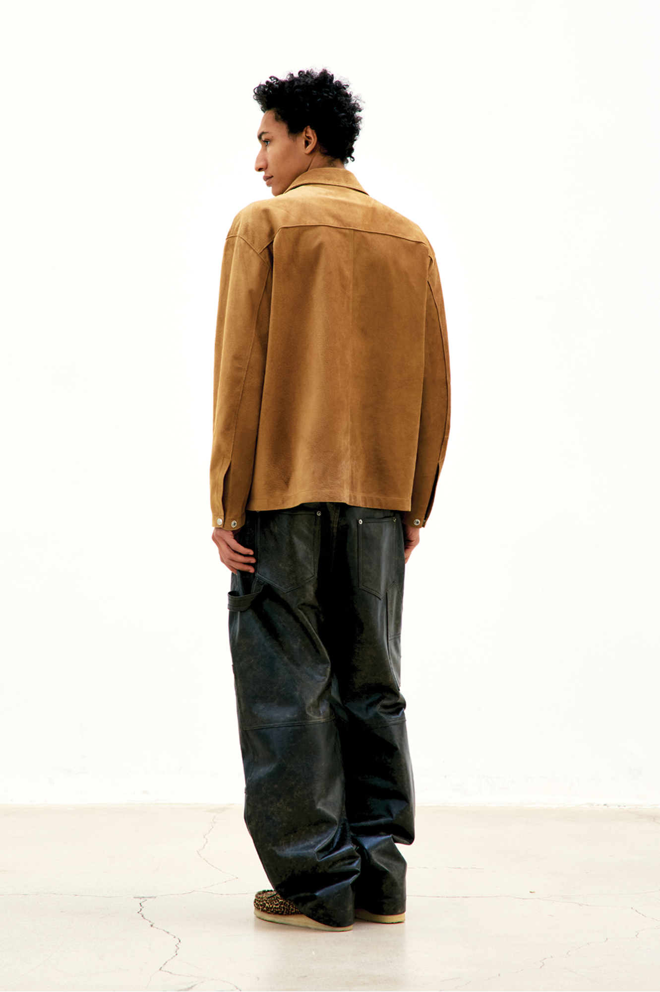 [COOR] Snap-Button Suede Leather Shirt Jacket (Camel Brown)