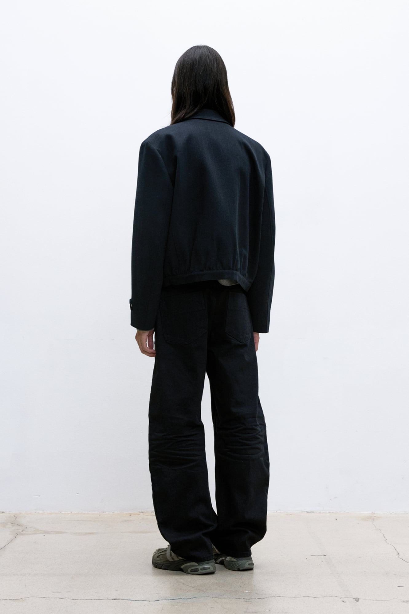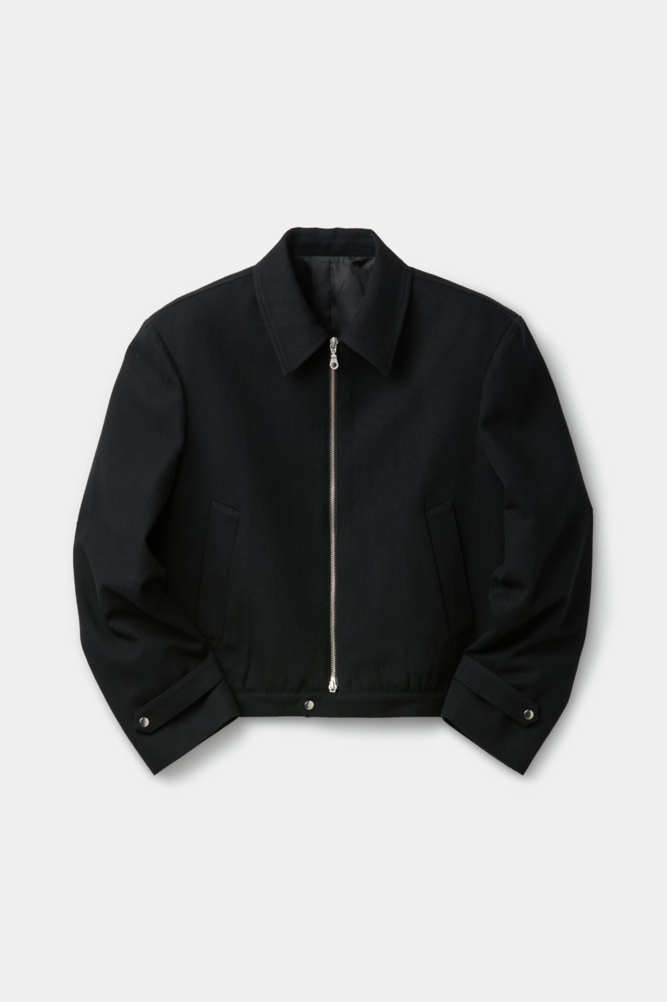 [COOR] Herringbone Stripe Wool Cropped Jumper (Black)