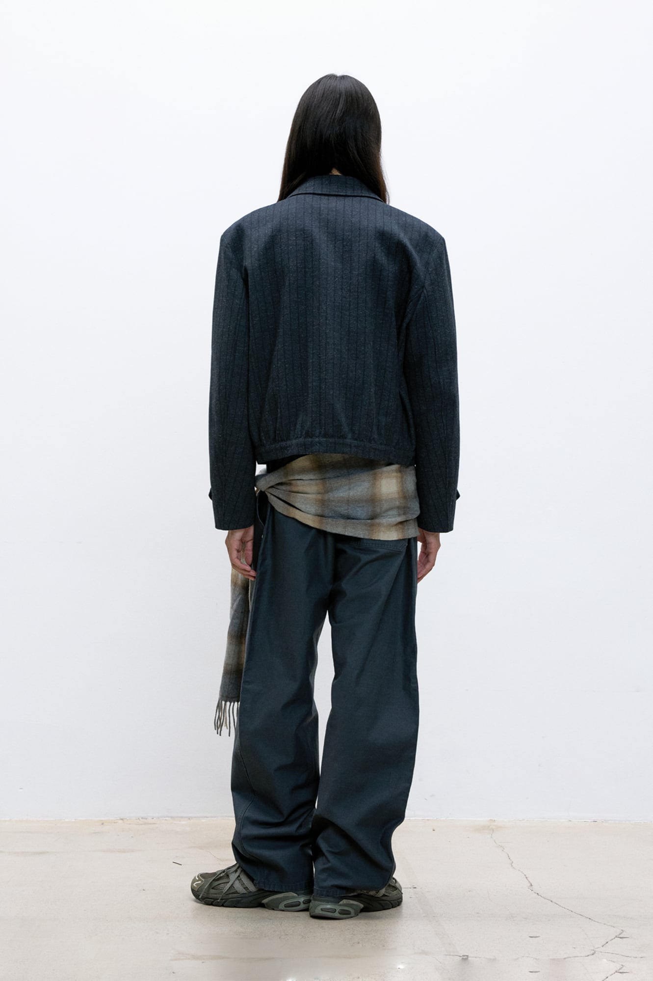 [COOR] Herringbone Stripe Wool Cropped Jumper (Charcoal Gray)