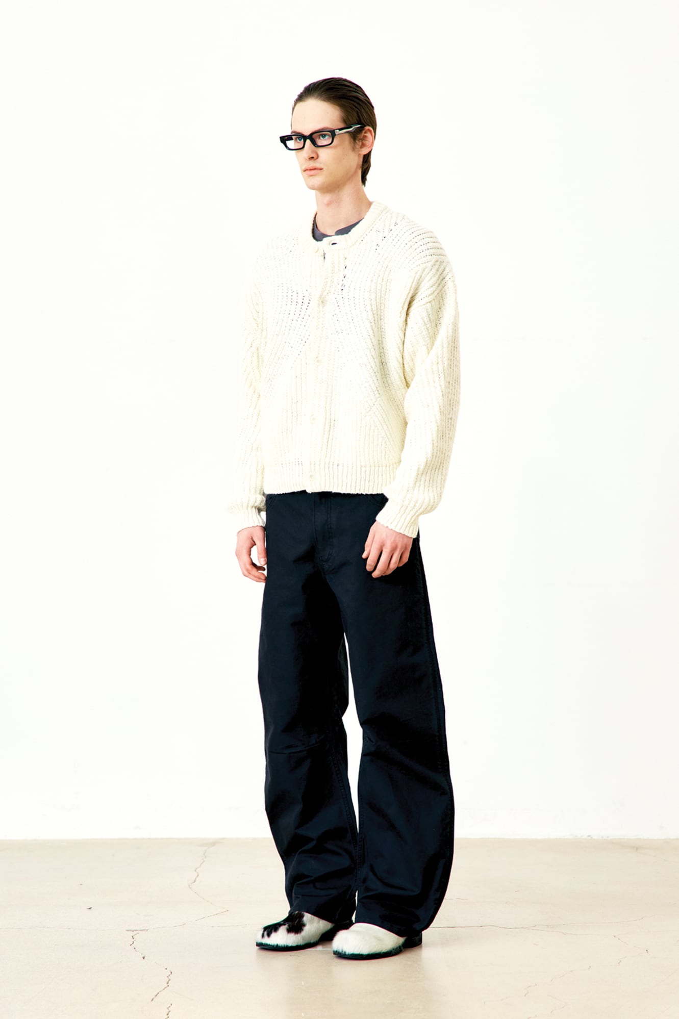 [COOR] Heavyweight Curved Rib Round-Neck Cardigan (Cream)