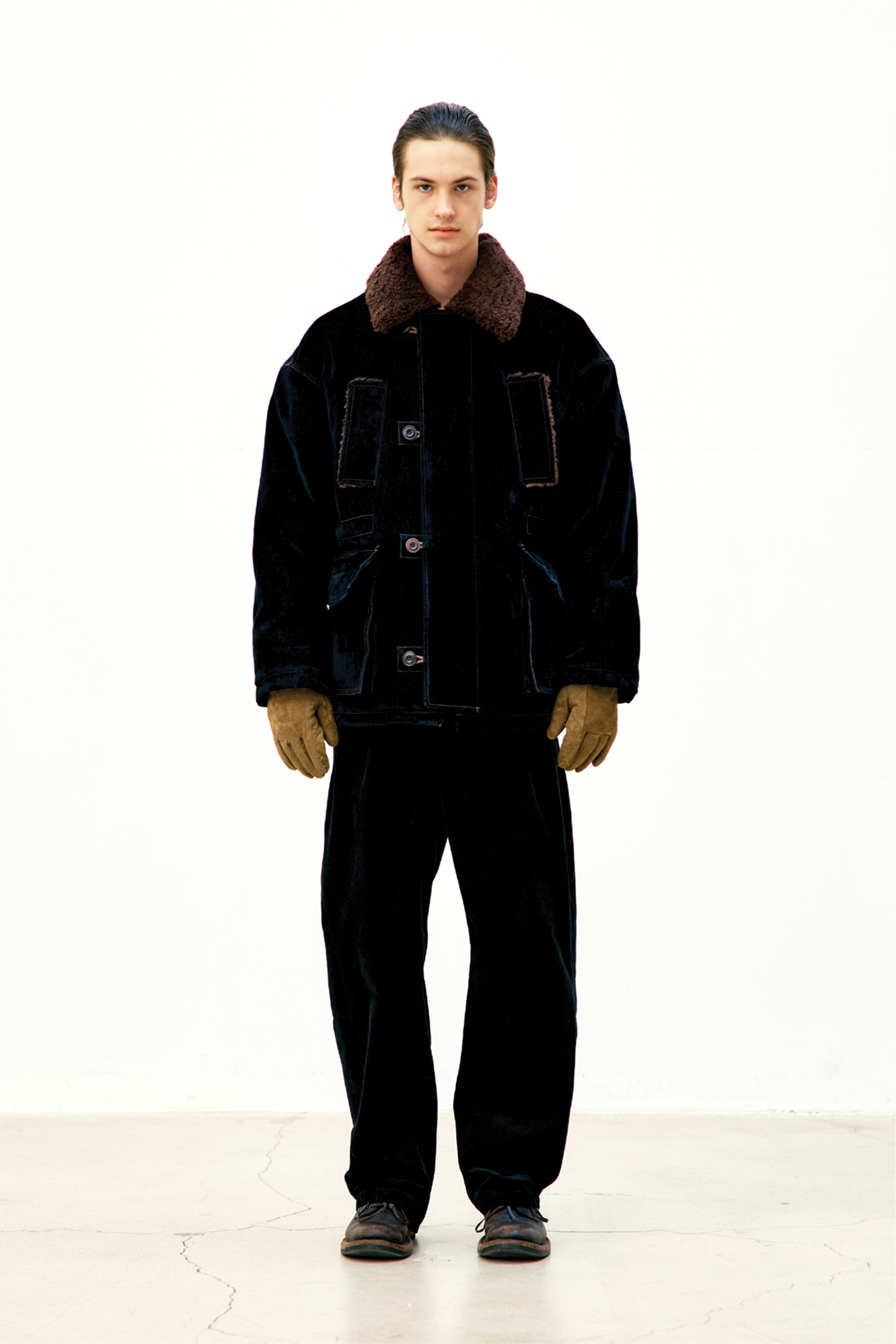 [COOR] Velvet Denim Padded Hunting Jacket (Washed Black) 正規品 韓国ブランド 韓国通販 韓国代行 韓国ファッション クール クーア クアー COOR 日本 店舗