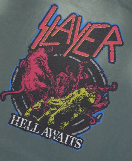 [UNDERMYCAR] SLAYER Undermycar Hell Awaits Vintage Washed T-Shirts Khaki
