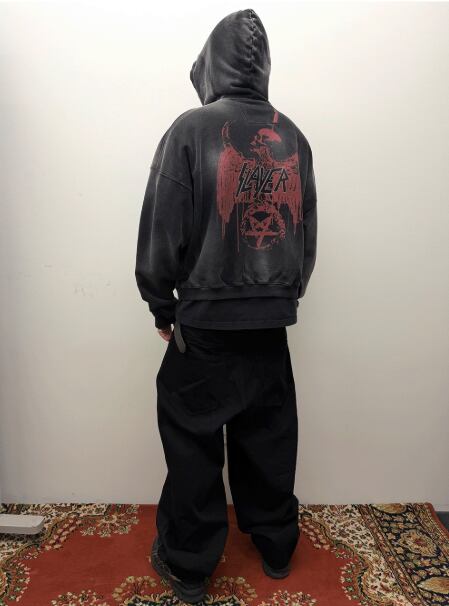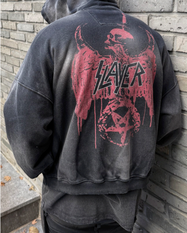 [UNDERMYCAR] SLAYER Undermycar Red Eagle Vintage Washed Hoodie Black