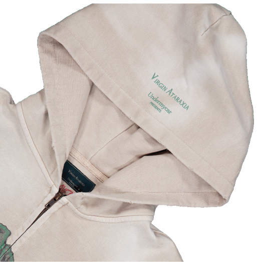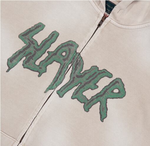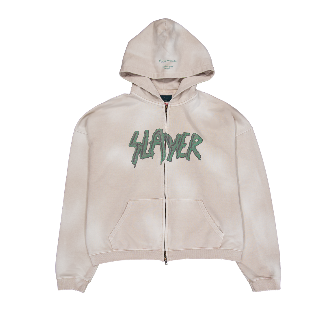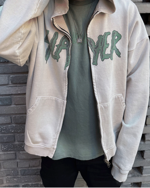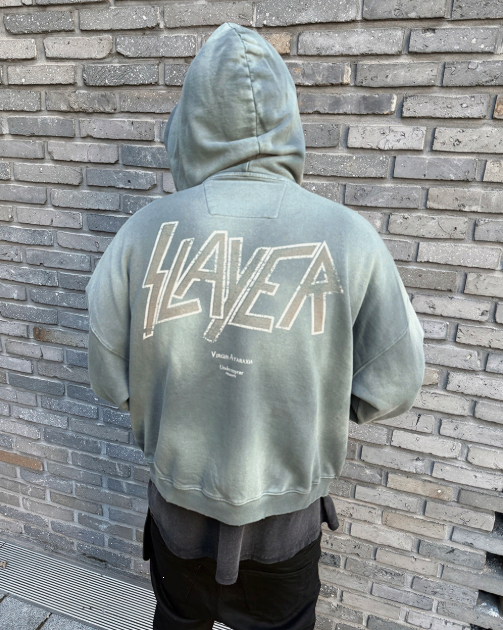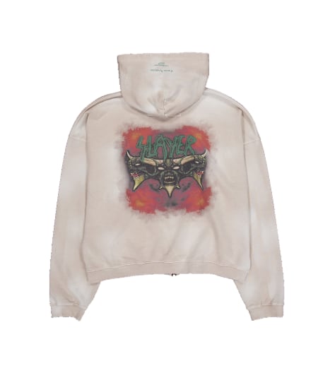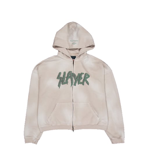 [UNDERMYCAR] SLAYER Undermycar Demon Heads In Flames Vintage Washed Zipped Hoodie Tan