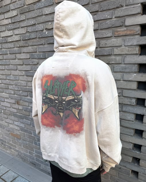 [UNDERMYCAR] SLAYER Undermycar Demon Heads In Flames Vintage Washed Zipped Hoodie Tan 正規品 韓国ブランド 韓国通販 韓国代行 韓国ファッション アンダーマイカー 日本 店舗