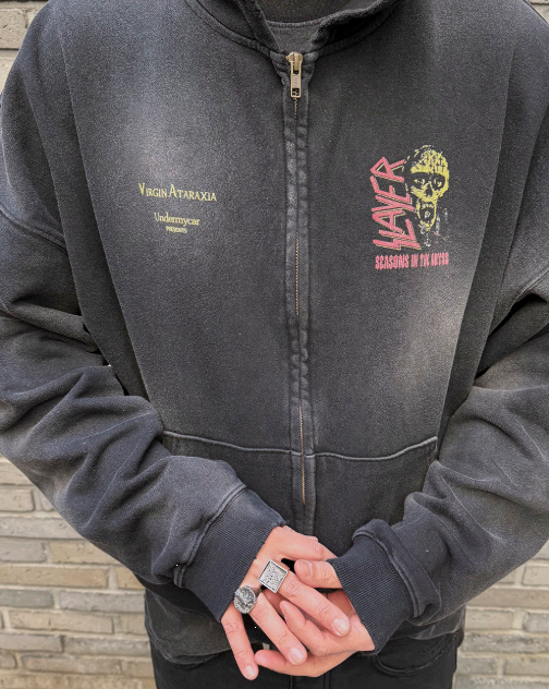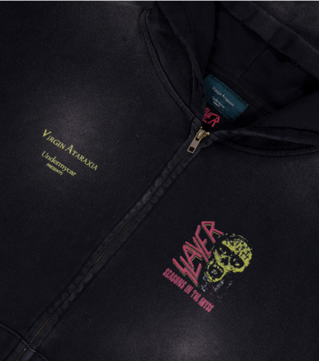 [UNDERMYCAR] SLAYER Undermycar Seasons In The Abyss Vintage Washed Zipped Hoodie Black