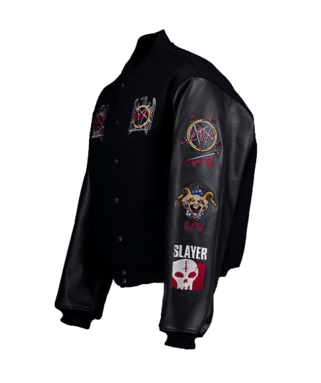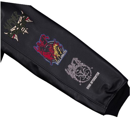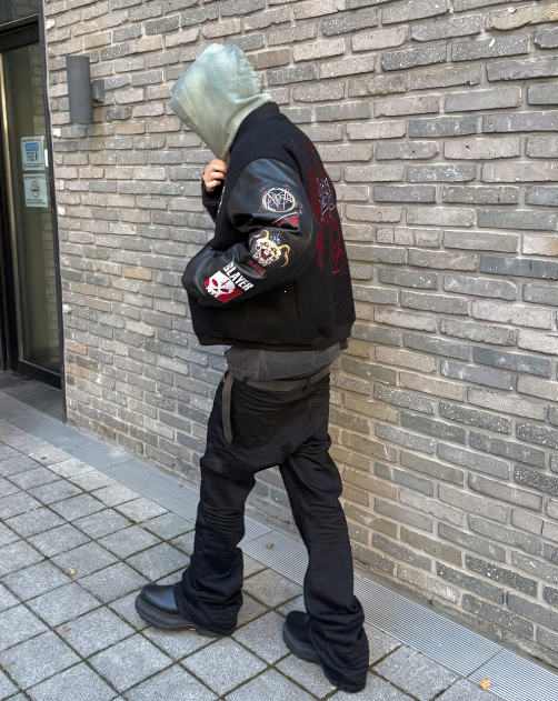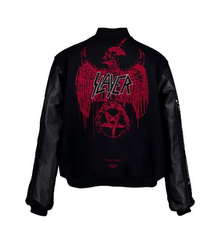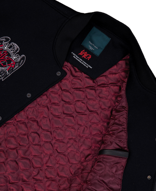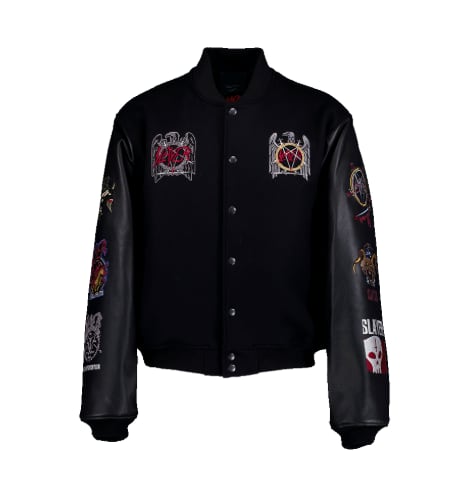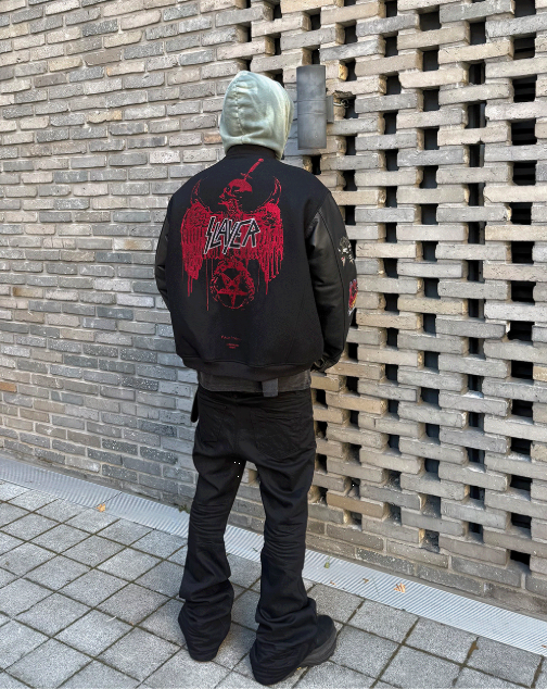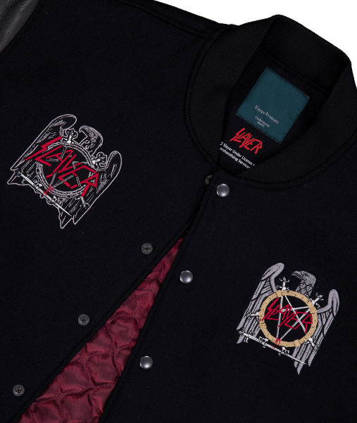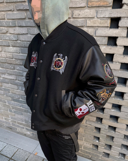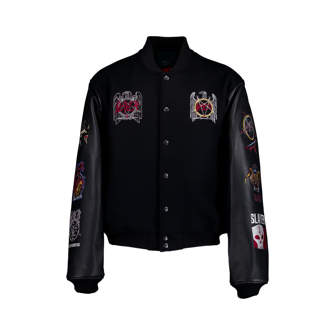 [UNDERMYCAR] SLAYER Undermycar Various Logo Embroidered Varsity Jacket Black