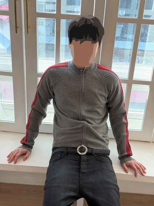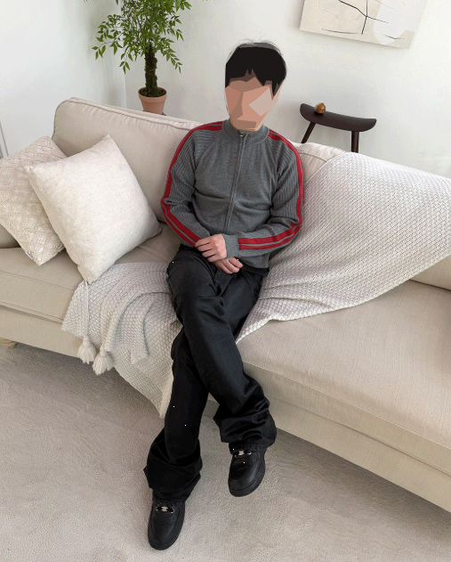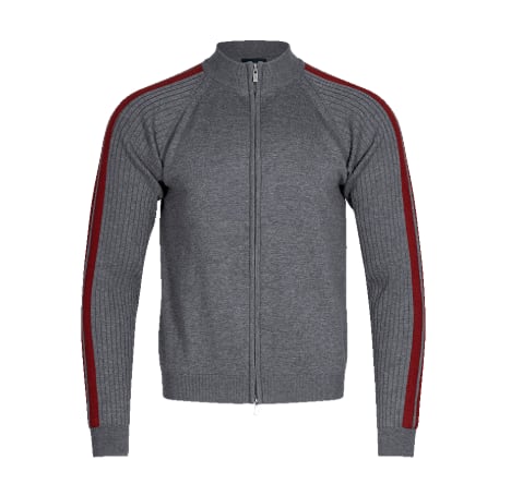 [UNDERMYCAR] Undermycar 25FW Double Line Slim Knit Zip-Up Gray/Red