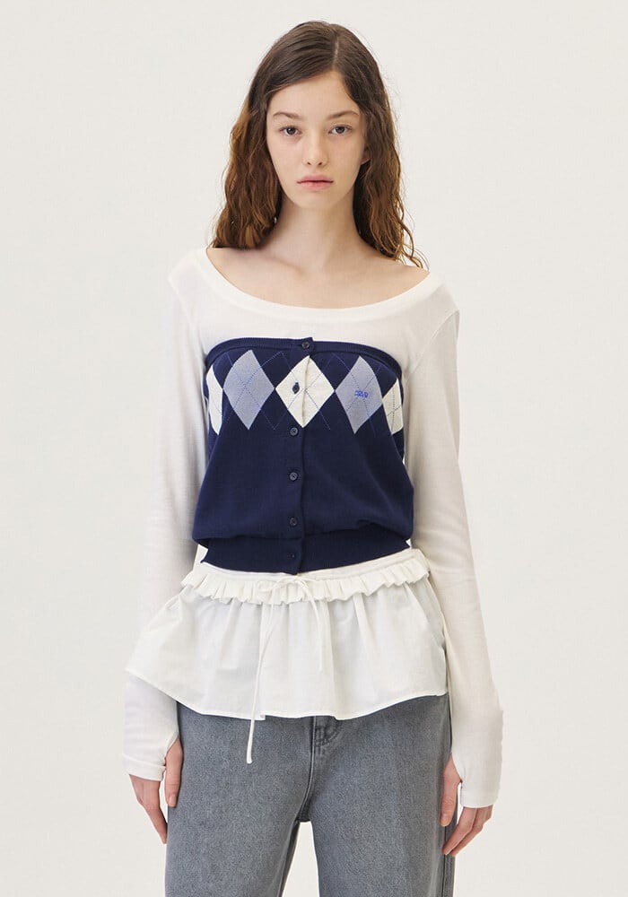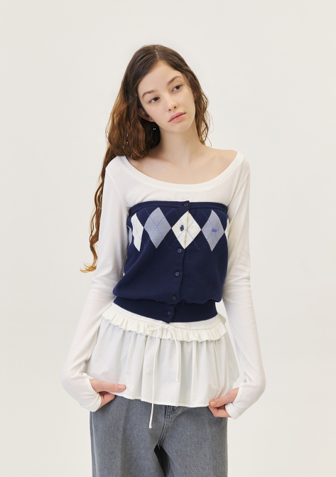 [GROVE] VENI ARGYLE TUBE TOP 正規品 韓国ブランド 韓国ファッション 韓国代行 日本 店舗 ブランド グローブ grvr 通販