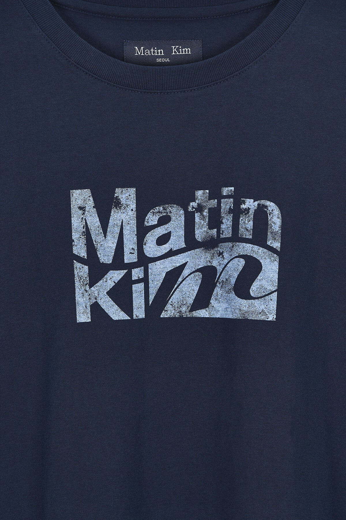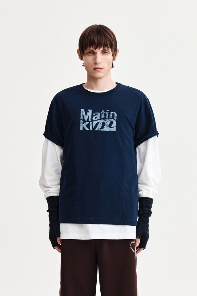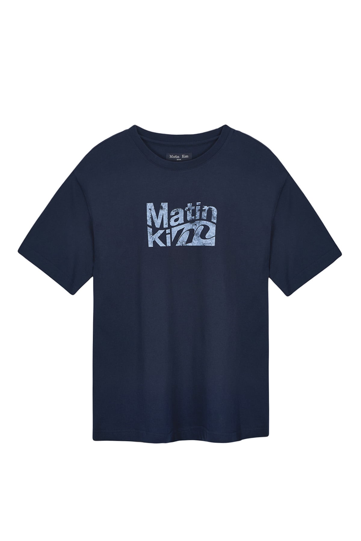 [Matin Kim] WAVY LOGO GRAPHIC TOP FOR MEN IN NAVY