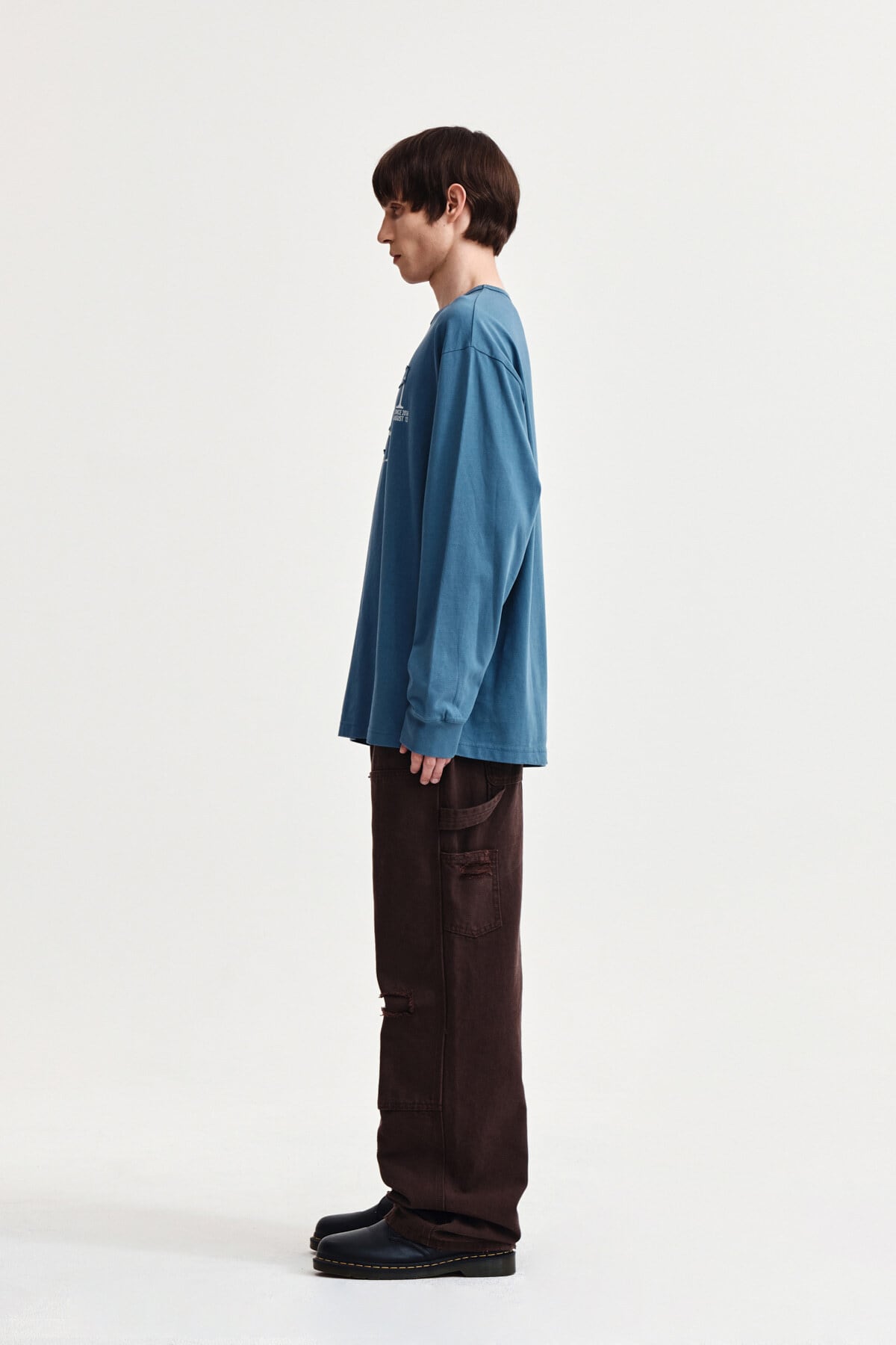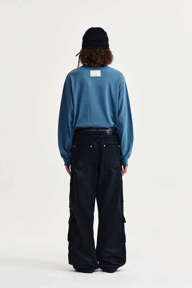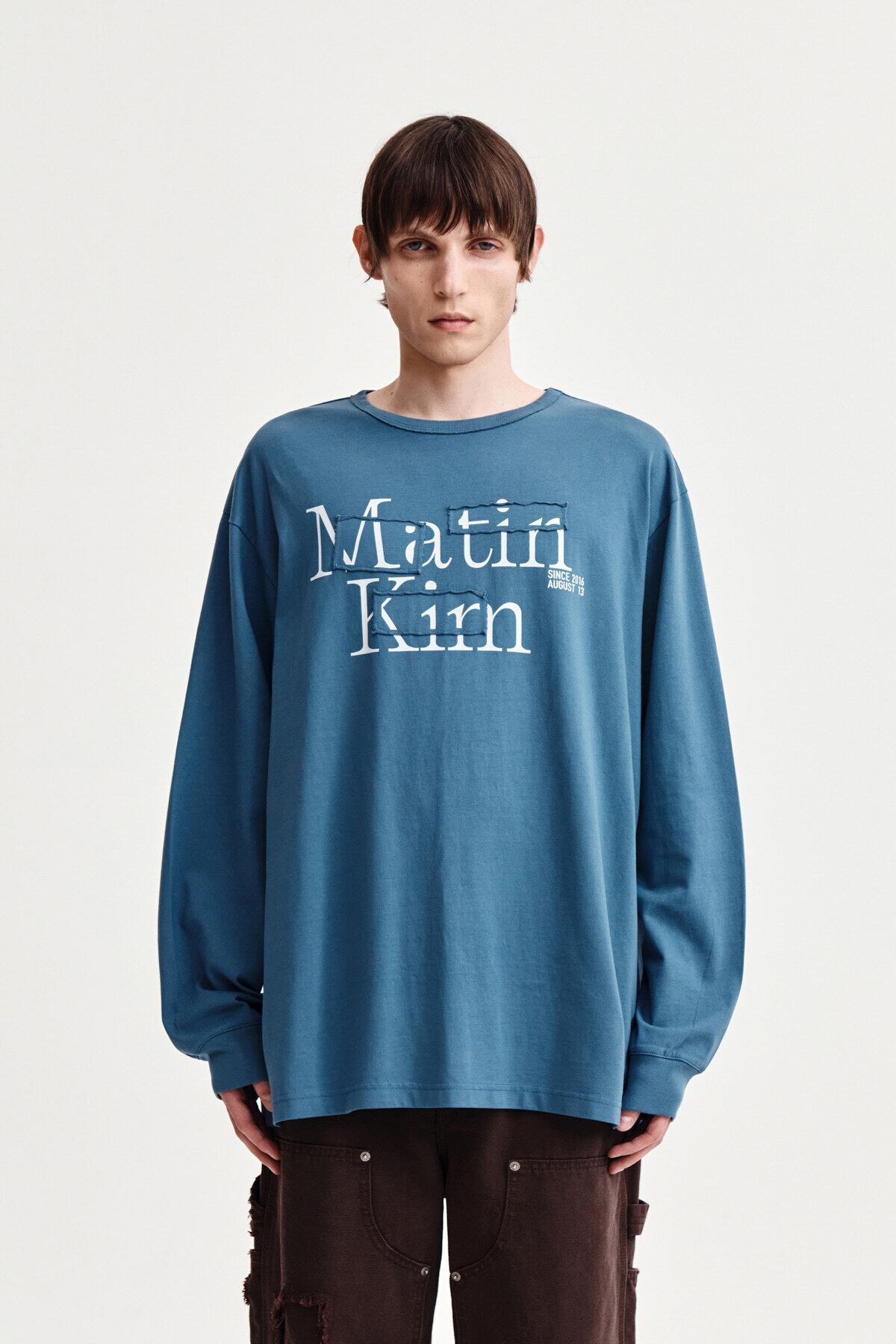 [Matin Kim] PATCH GRAPHIC LONG SLEEVE TOP IN SMOKE BLUE