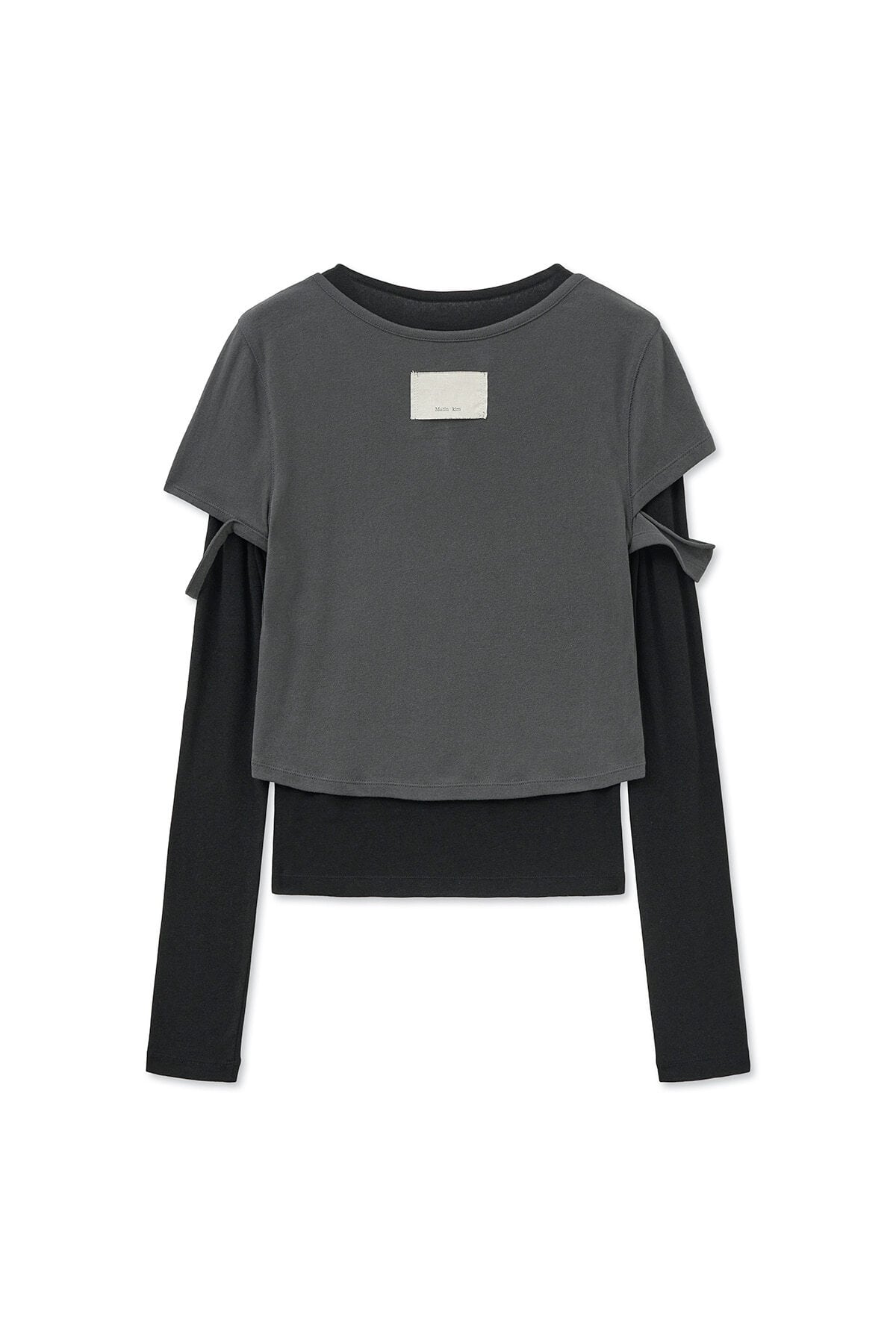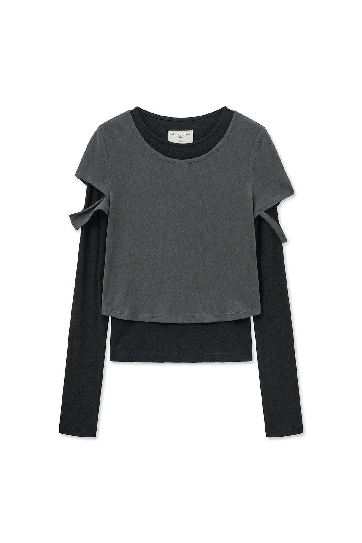 [Matin Kim] LAYERED POINT SLIM TOP IN CHARCOAL 正規品 韓国ブランド 韓国通販 韓国代行 韓国ファッション マーティンキム matinkim 日本 店舗