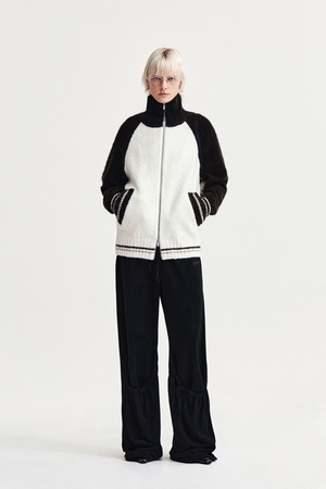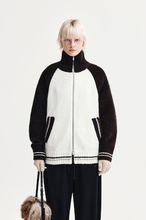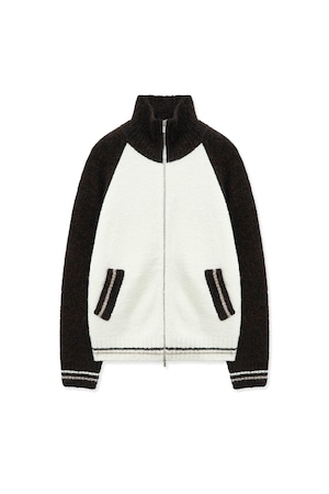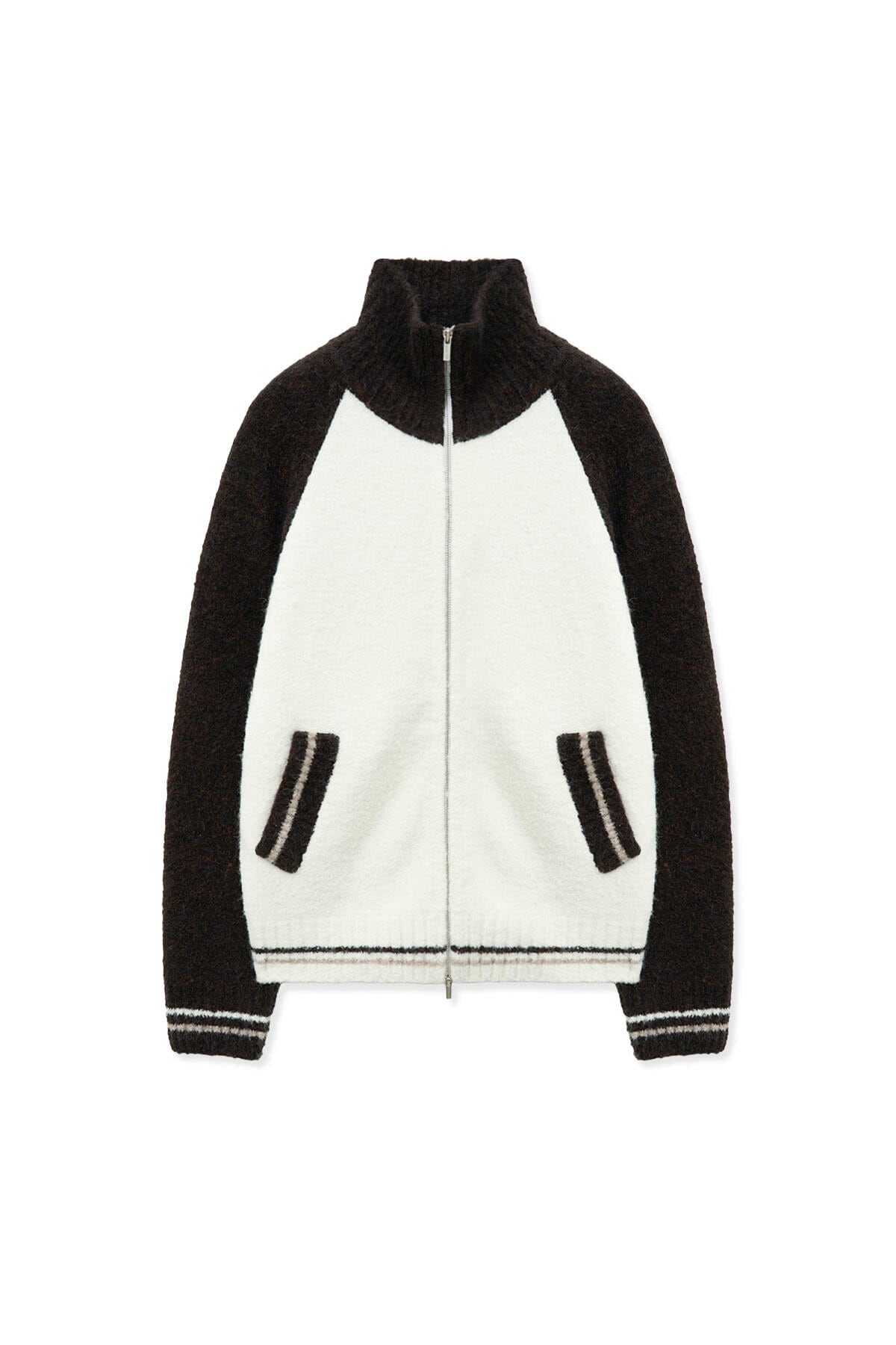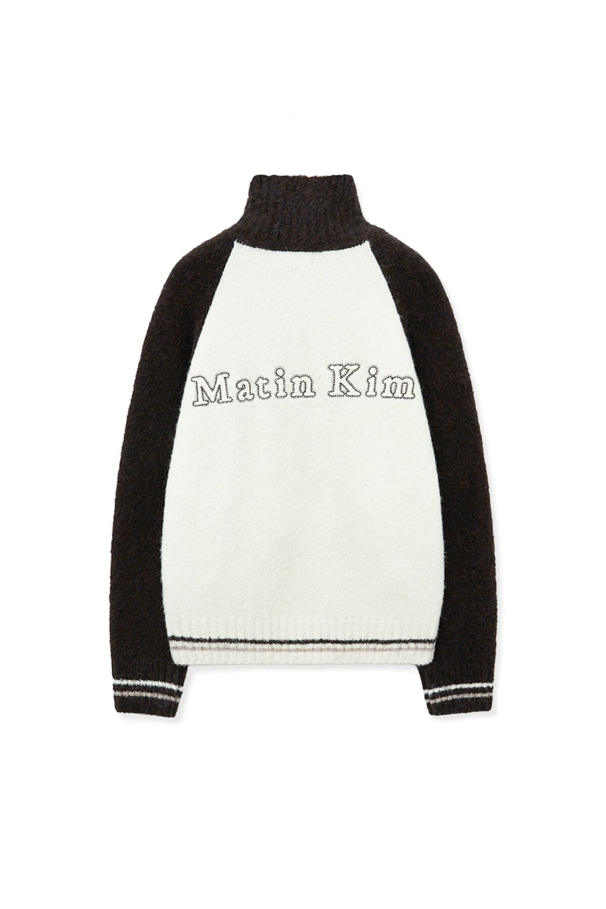 [Matin Kim] HIGH NECK RAGLAN KNIT ZIP UP FOR WOMEN IN DARK BROWN