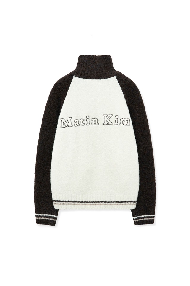 [Matin Kim] HIGH NECK RAGLAN KNIT ZIP UP FOR WOMEN IN DARK BROWN 正規品 韓国ブランド 韓国通販 韓国代行 韓国ファッション マーティンキム matinkim 日本 店舗