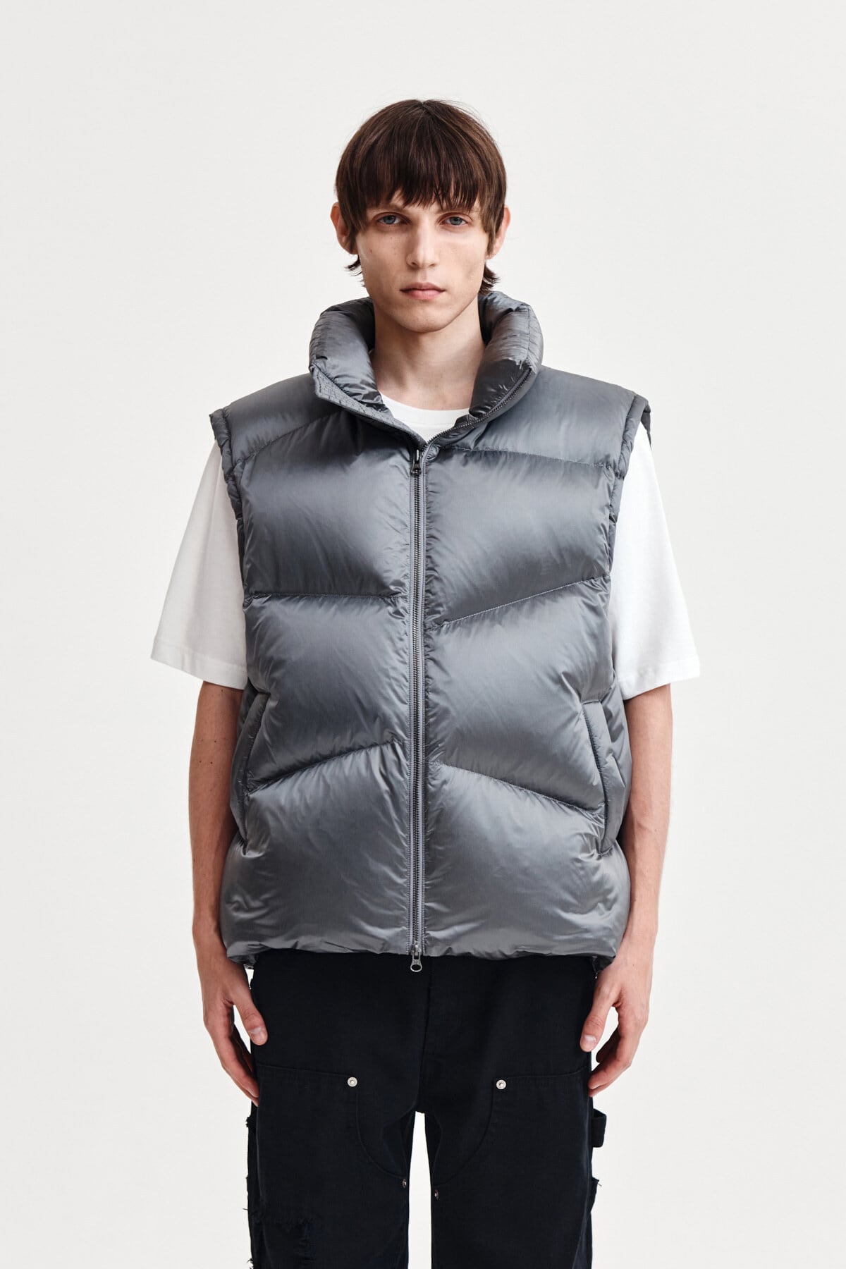 [Matin Kim] UNBALANCE QUILTED DOWN VEST FOR MEN IN GREY