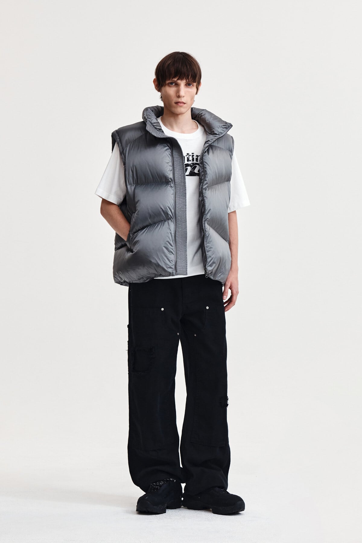 [Matin Kim] UNBALANCE QUILTED DOWN VEST FOR MEN IN GREY 正規品 韓国ブランド 韓国通販 韓国代行 韓国ファッション マーティンキム matinkim 日本 店舗