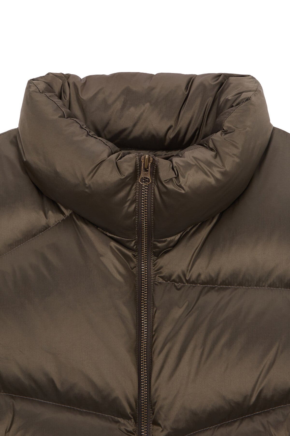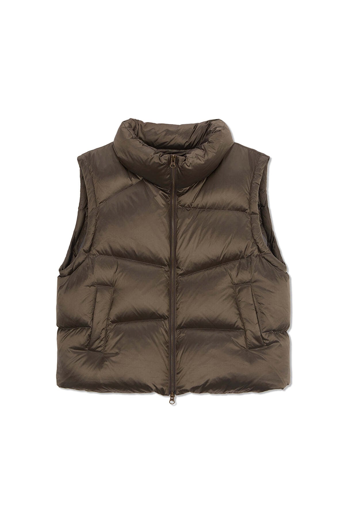 [Matin Kim] UNBALANCE QUILTED DOWN VEST FOR WOMEN IN KHAKI BROWN